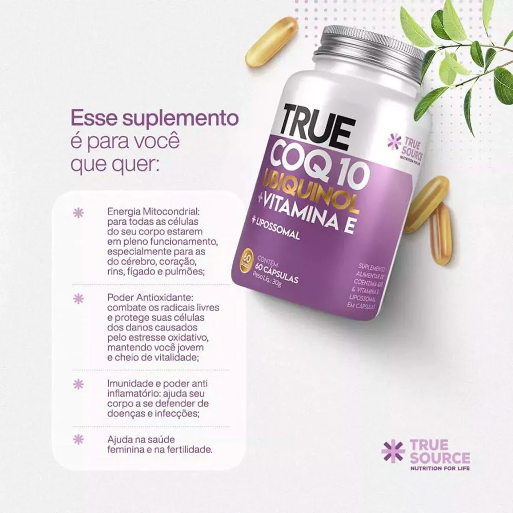 Coenzima Q10 Coq10 Ubiquinol Lipossomal (60 Caps) - True Source