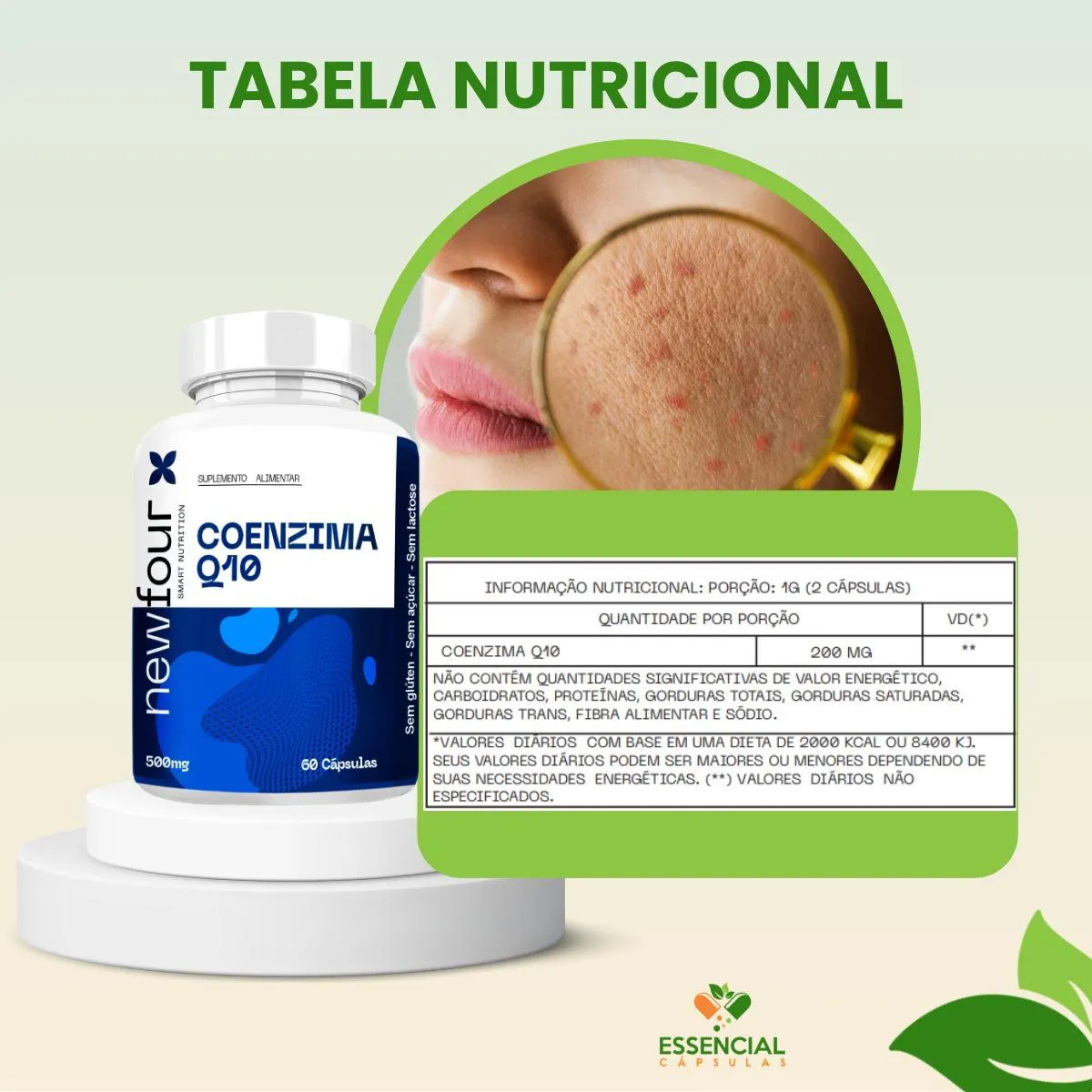 A Coenzima Q10 é um suplemento alimentar natural composto pela substância Coenzima Q10, destinado a pessoas saudáveis que buscam complementar sua alimentação. Serve para apoiar rotinas de vitalidade e equilíbrio diário, sendo popular entre pessoas que valorizam práticas de autocuidado e bem-estar, com recomendação de consumo de 01 cápsula duas vezes ao dia.