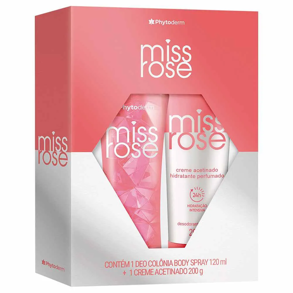O Coffret Phytoderm Miss Rose Kit - Body Splash + Creme Acetinado é uma edição especial desenvolvida para proporcionar hidratação intensa e uma fragrância elegante. Com a combinação do body splash e do creme acetinado, este kit destaca-se por oferecer um toque sofisticado à sua rotina de cuidados pessoais, ressaltando a feminilidade através das notas borbulhantes de champagne rosé combinadas com flores, frutas e madeiras nobres.