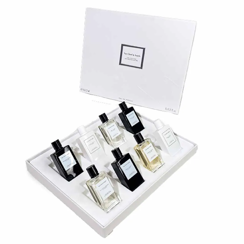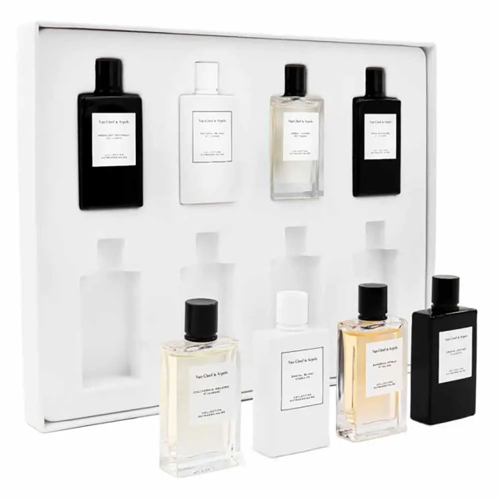 O Coffret Van Cleef & Arpels Kit é um conjunto de presentes unissex da renomada coleção Extraordinaire, projetado para os amantes de fragrâncias sofisticadas. Este kit exclusivo apresenta oito Eau de Parfum irresistíveis, cada uma especialmente formulada para complementar diferentes humores e ocasiões. Ideal tanto para homens quanto para mulheres, este coffret reflete a essência da elegância intemporal e oferece uma experiência olfativa única.