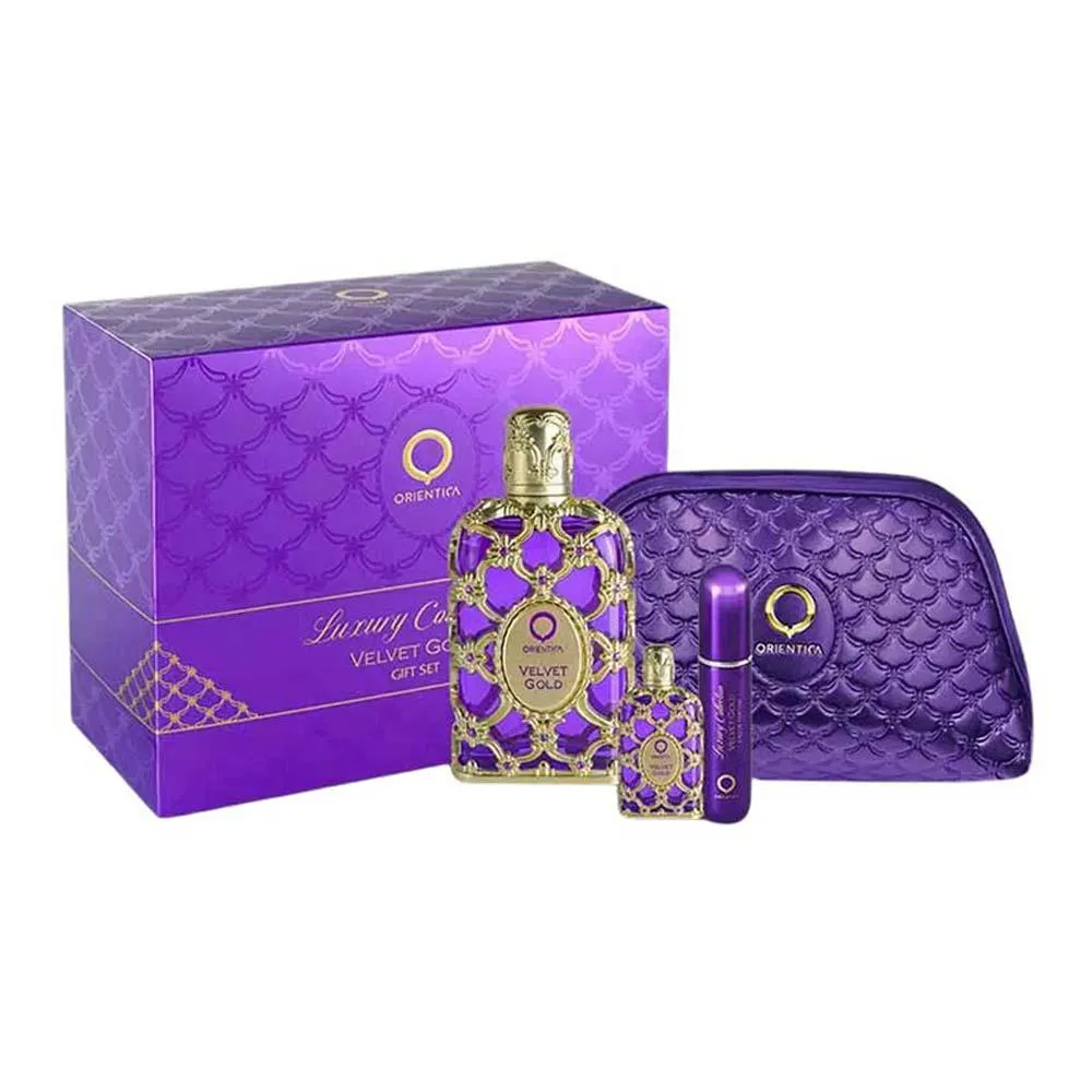 Coffret Velvet Gold Orientica Kit Perfume Árabe Feminino Edp + Travel Size + Aromatizador + Nécessaire