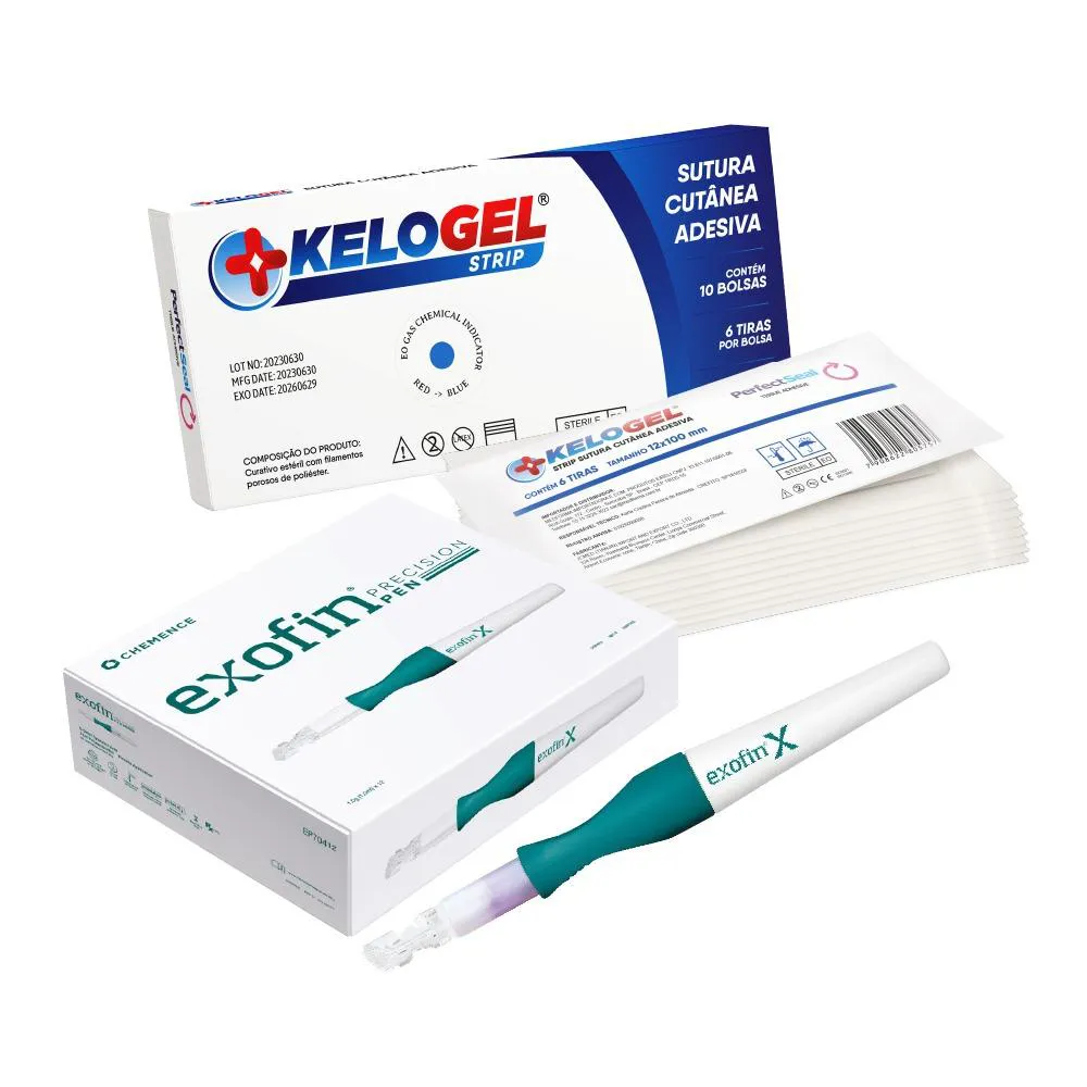 ADESIVO CIRURGICO EXOFIN PEN 1ML CX 12UN +12 PCT STERISTRIP KELOGEL O Kit Exofin Pen + Steri-Strip Kelogel oferece uma solução avançada para fechamento e proteção de feridas e incisões cirúrgicas, garantindo precisão e segurança. Composto pela caneta adesiva Exofin Pen com 1ml e 60cm de sutura cutânea adesiva Steri-Strip Kelogel, este kit é ideal para procedimentos que exigem maior controle e durabilidade. Seu rendimento estendido, de 60 a 70cm, proporciona maior eficiência e flexibilidade no uso. A Exofin Pen permite uma aplicação precisa do adesivo, criando uma camada protetora que atua como barreira contra infecções e auxilia na cicatrização. A sutura Steri-Strip Kelogel oferece suporte adicional, aliviando a tensão da pele e garantindo um fechamento seguro e uma cicatrização esteticamente satisfatória. Indicação de uso: Recomendado para procedimentos cirúrgicos, fechamento de incisões e cortes superficiais. O kit substitui as suturas convencionais de forma prática, minimizando cicatrizes e acelerando o processo de recuperação. Modo de uso: Aplique o adesivo com a Exofin Pen sobre a incisão limpa e seca, distribuindo uniformemente. Aguarde até que seque completamente. Em seguida, posicione as tiras Steri-Strip Kelogel para reforçar o fechamento e garantir maior estabilidade. Com o Kit Exofin Pen + Steri-Strip Kelogel, você obtém resultados profissionais com máxima precisão e segurança, promovendo uma recuperação eficiente e uma cicatrização perfeita. Registro ANVISA: 80117581118 e 81926099008.