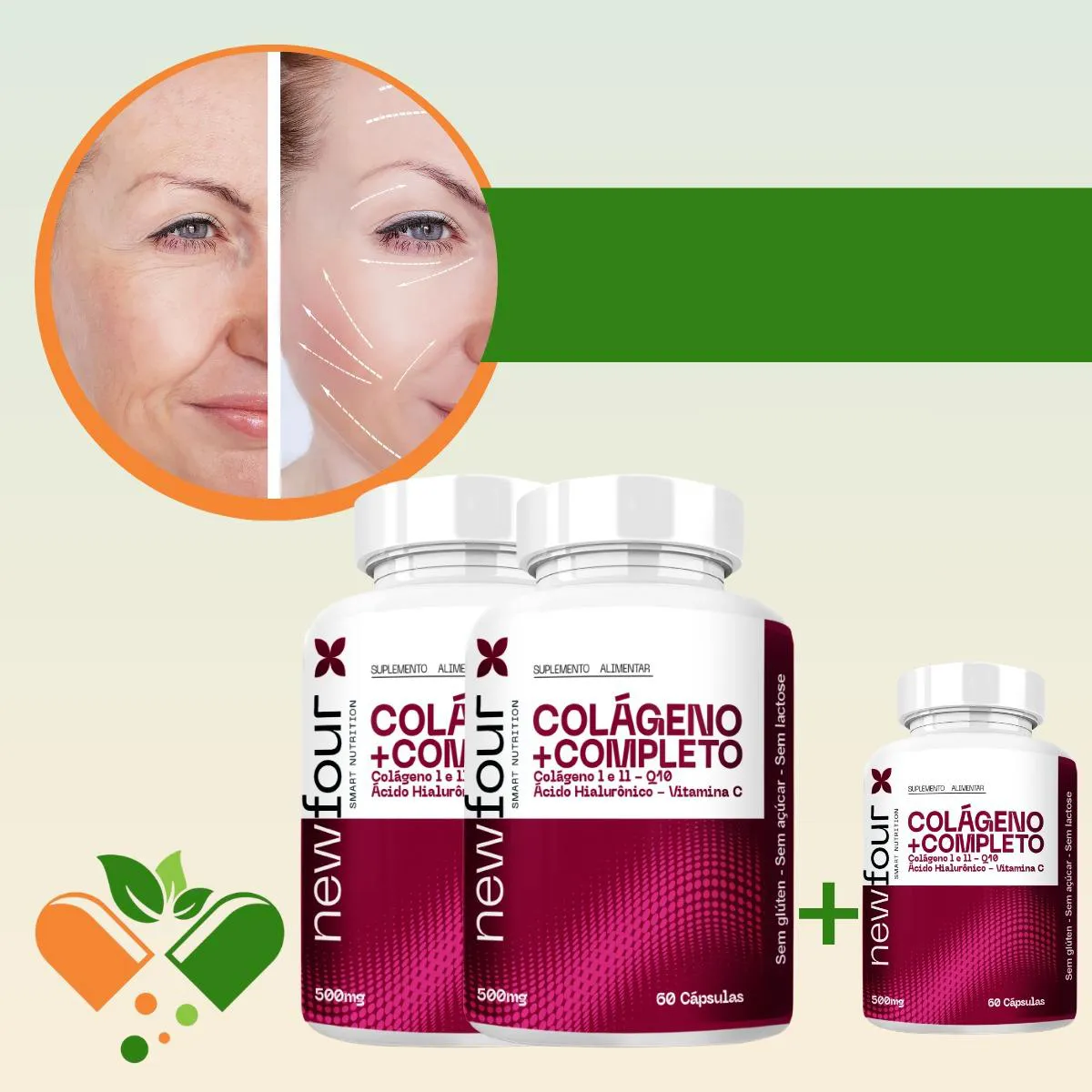 Colágeno + Completo - Colágeno I e Ii , Q10 , Ácido Hialurônico , Vitamina C Compre 2 Leve 3 com Total de 180 Capsulas