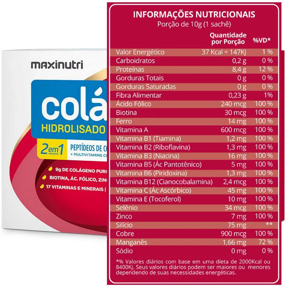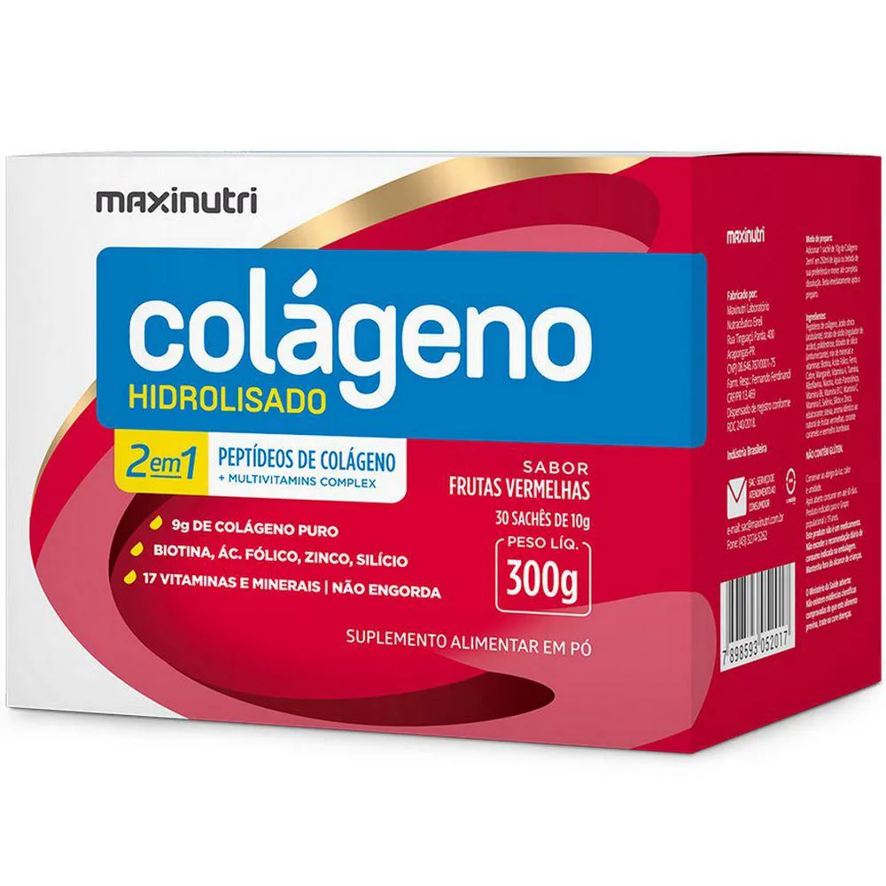 COLáGENO HIDROLISADO 2 EM 1 - 30 SACHES DE 10G - FRUTAS VERMELHAS - MAXINUTRI