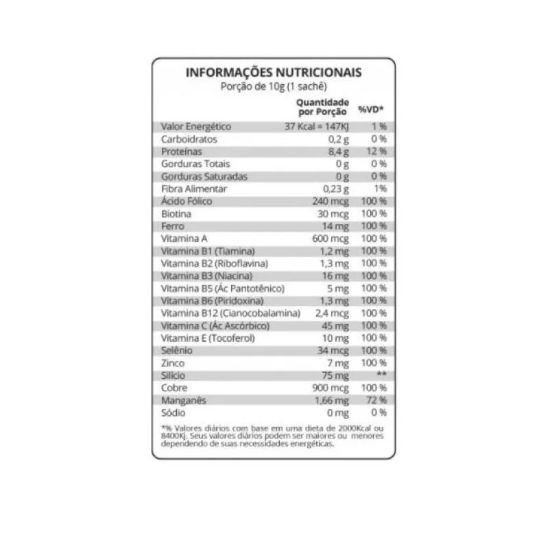 - Desenvolvido para saúde de pele, cabelo e unhas.