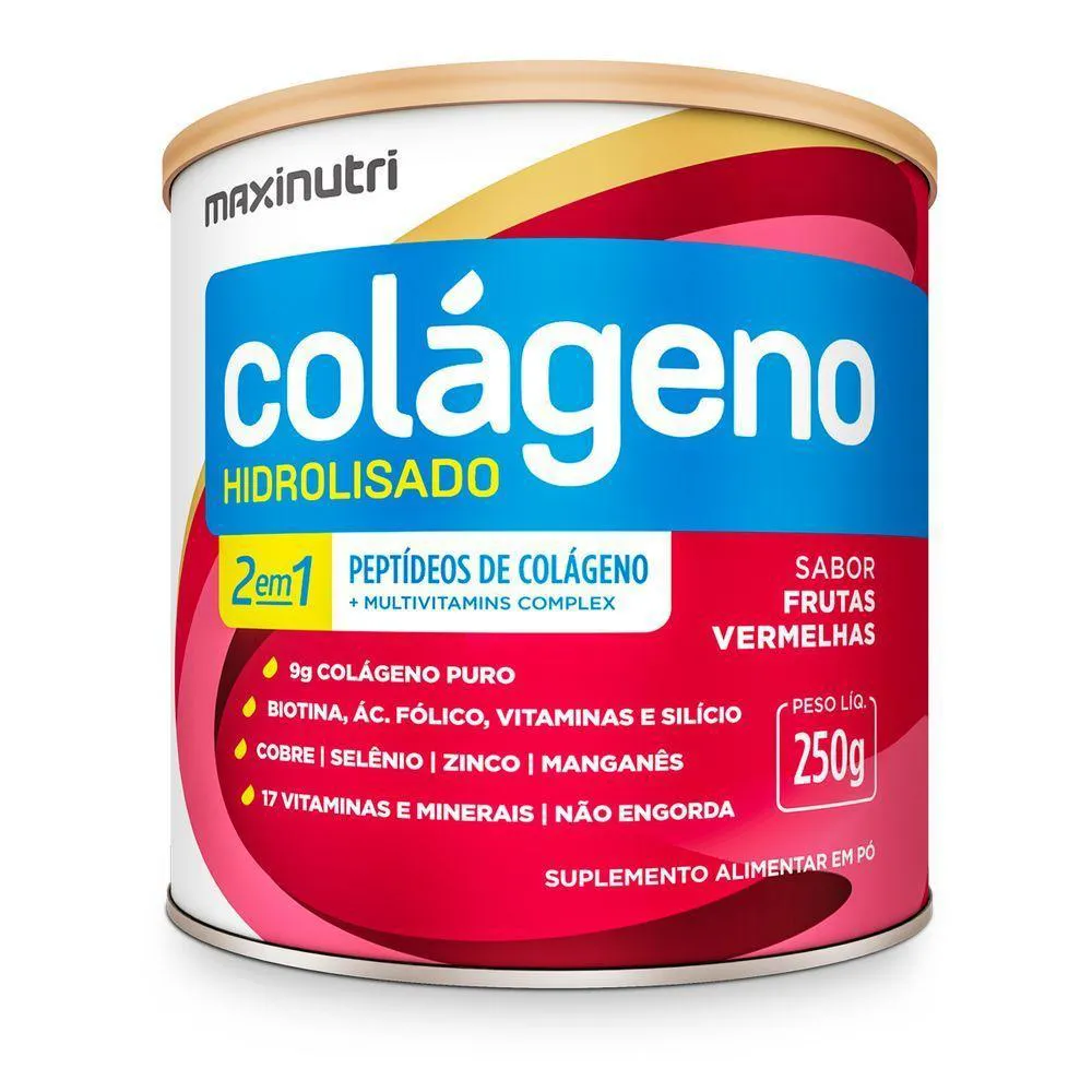 Colágeno Hidrolisado 2 em 1 Verisol Maxinutri 250g Frutas VermelhasO Colágeno Hidrolisado 2 em 1 Verisol da Maxinutri é um suplemento alimentar formulado para promover a saúde da pele, cabelos e unhas. Aqui estão alguns dos possíveis benefícios associados a este produto:Saúde da pele: O Verisol é uma forma específica de colágeno que tem sido estudada por seus efeitos positivos na saúde da pele. Ele pode ajudar a melhorar a elasticidade, firmeza e hidratação da pele, reduzindo a aparência de rugas e linhas de expressão.Fortalecimento dos cabelos e unhas: O colágeno é uma proteína estrutural importante que compõe cabelos e unhas. A suplementação com colágeno pode ajudar a fortalecer os folículos capilares, reduzir a quebra e a queda de cabelo, e promover o crescimento capilar saudável. Além disso, pode ajudar a fortalecer as unhas, prevenir a fragilidade e a quebra, e promover o crescimento de unhas saudáveis e resistentes.Proteção antioxidante: O Colágeno Hidrolisado 2 em 1 Verisol, com adição de frutas vermelhas, pode fornecer uma dose adicional de antioxidantes, que ajudam a neutralizar os radicais livres e proteger a pele contra danos causados pelo sol e outros fatores ambientais.Estímulo à produção de colágeno: Além de fornecer colágeno diretamente, o Verisol pode estimular a produção de colágeno natural da pele. Isso ajuda a restaurar a estrutura e a firmeza da pele ao longo do tempo, proporcionando uma aparência mais jovem e saudável.Melhora da hidratação da pele: A combinação de colágeno Verisol e frutas vermelhas pode ajudar a melhorar a hidratação da pele, mantendo-a macia, suave e flexível.Ingredientes