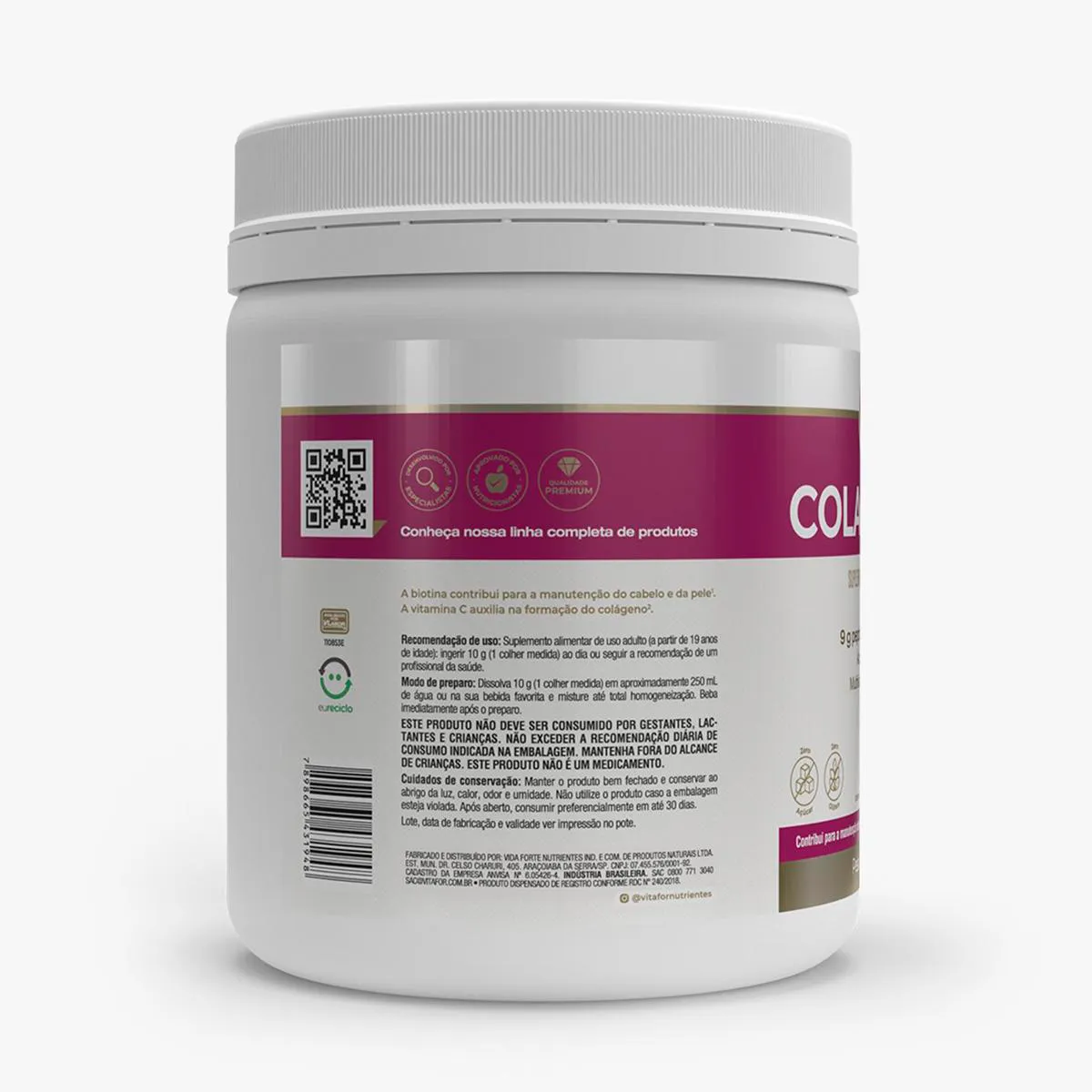 - Suplemento à base de colágeno hidrolisado sem açúcar.