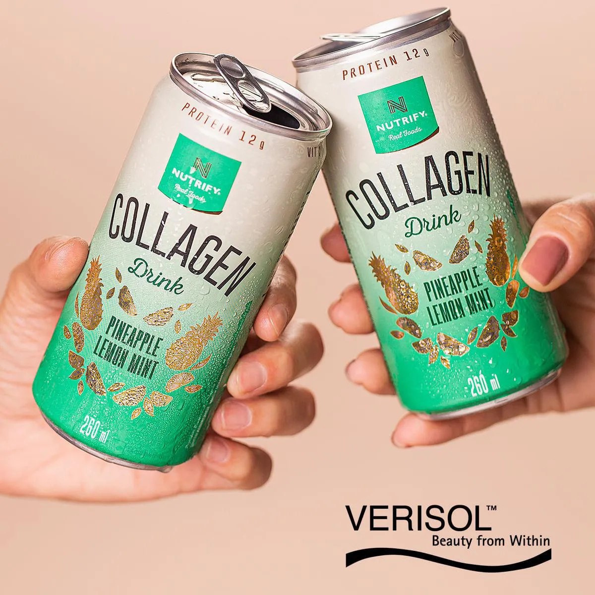 Uma bebida refrescante e levemente gaseificada, desenvolvida com ingredientes que agem de forma sinérgica para manter ou melhorar as funcionalidades da pele. Collagen Drink é o 1º suplemento ready to drink (pronto para beber) do Brasil com fonte proteica 100% proveniente de colágeno e 2,5 g de peptídeos bioativos de colágeno VERISOL® em sua composição.