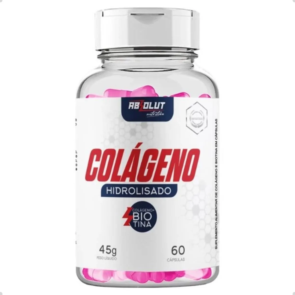 Colágeno Hidrolisado com Biotina 60 Capsulas Absolut Nutrition Natural