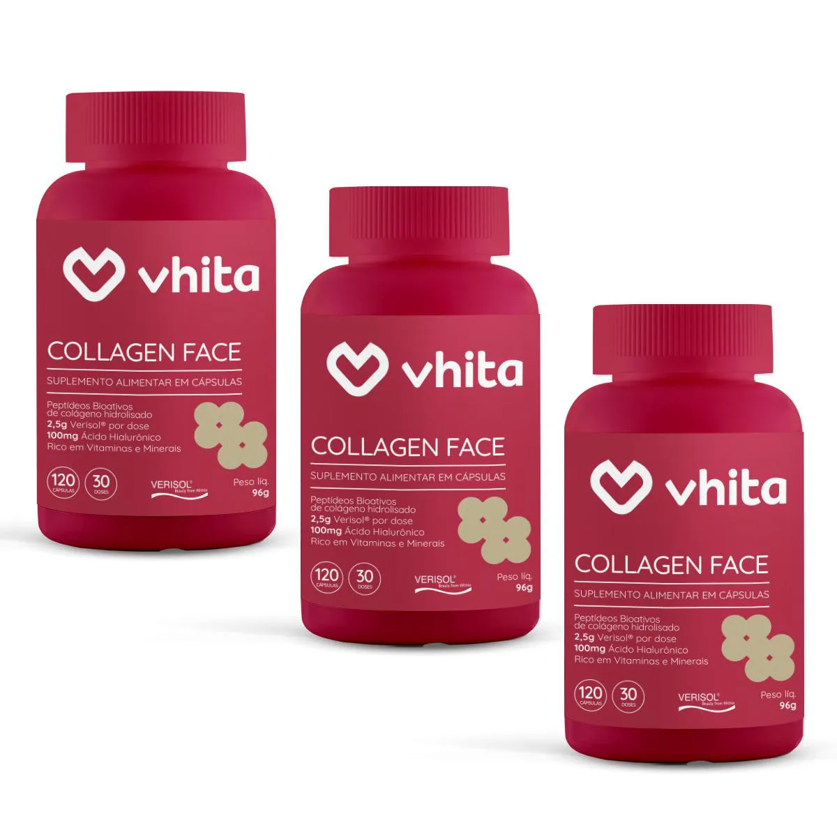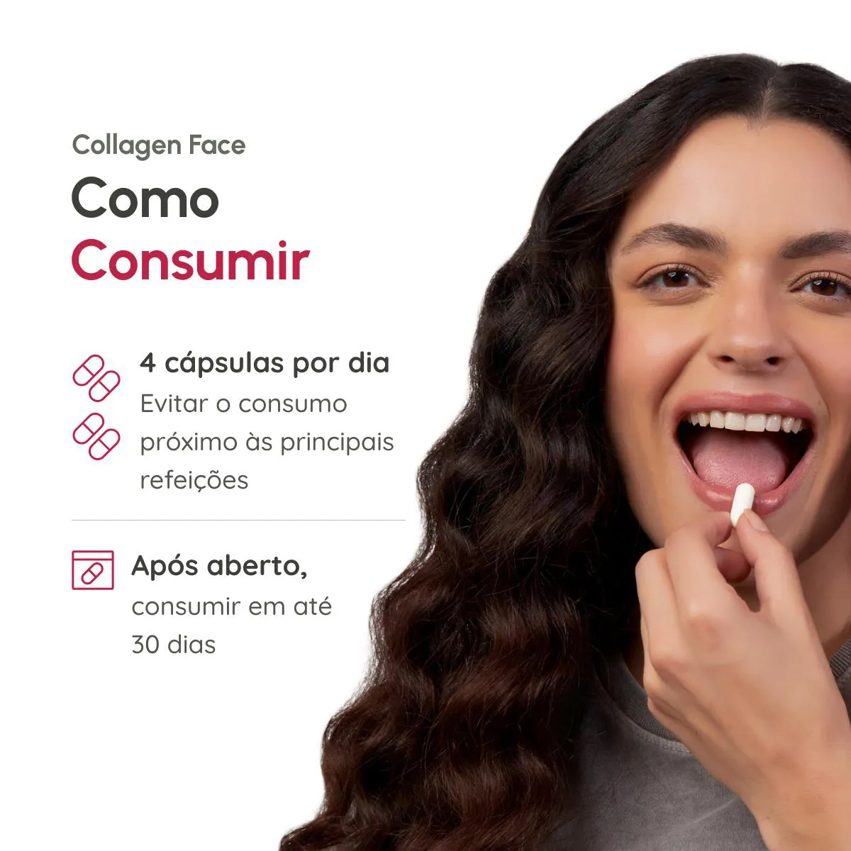 COMO TOMAR COLÁGENO HIDROLISADO VERISOL COLLAGEN FACE VHITA ?Recomendamos o consumo de 4 cápsulas de Collagen Face Vhita ao dia. Orientamos evitar o consumo próximo às principais refeições, uma vez que o colágeno é uma proteína. Dessa forma, assegura-se uma melhor absorção.