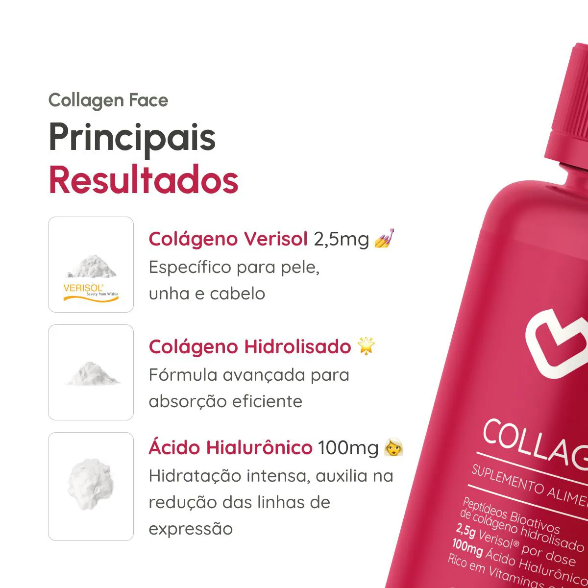 COLÁGENO VERISOL: Contém Verisol, colágeno específico para a pele, com benefícios comprovados para a elasticidade e firmeza cutânea.