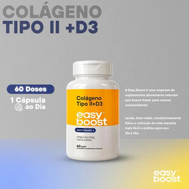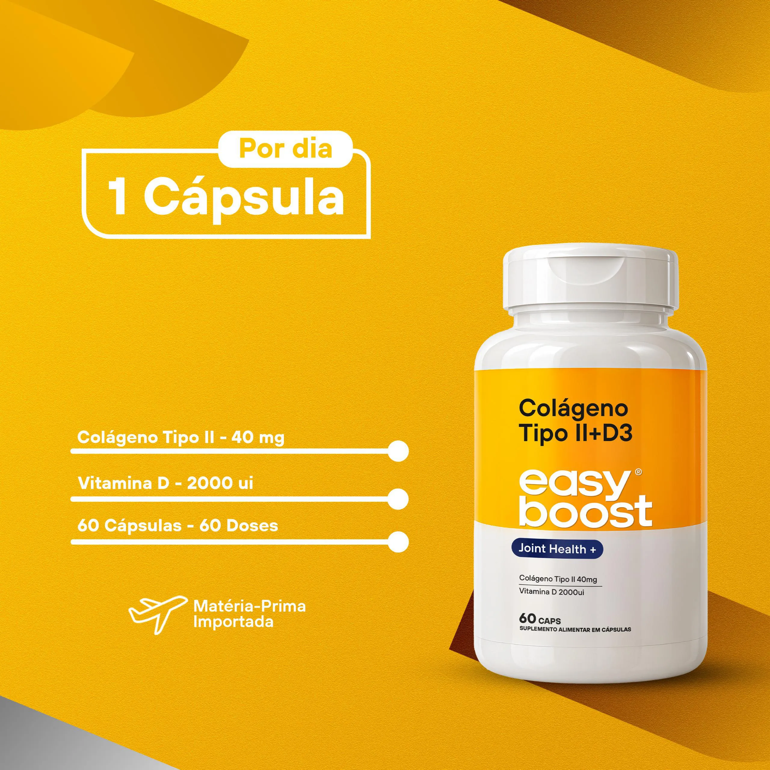 Colágeno Tipo 2 40mg + D3 2000ui Easy Boost 120 cápsulas Kit 2x