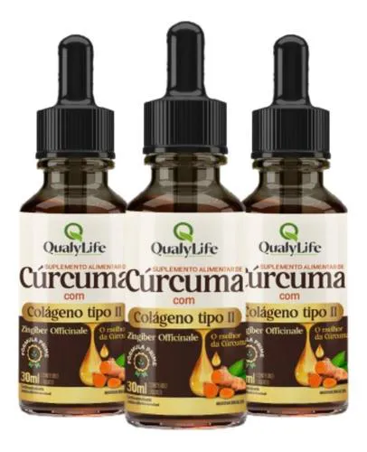 Colágeno Tipo 2 e Curcumina em Gotas 3 X 30ml Qualylife