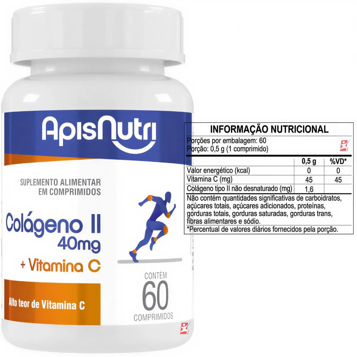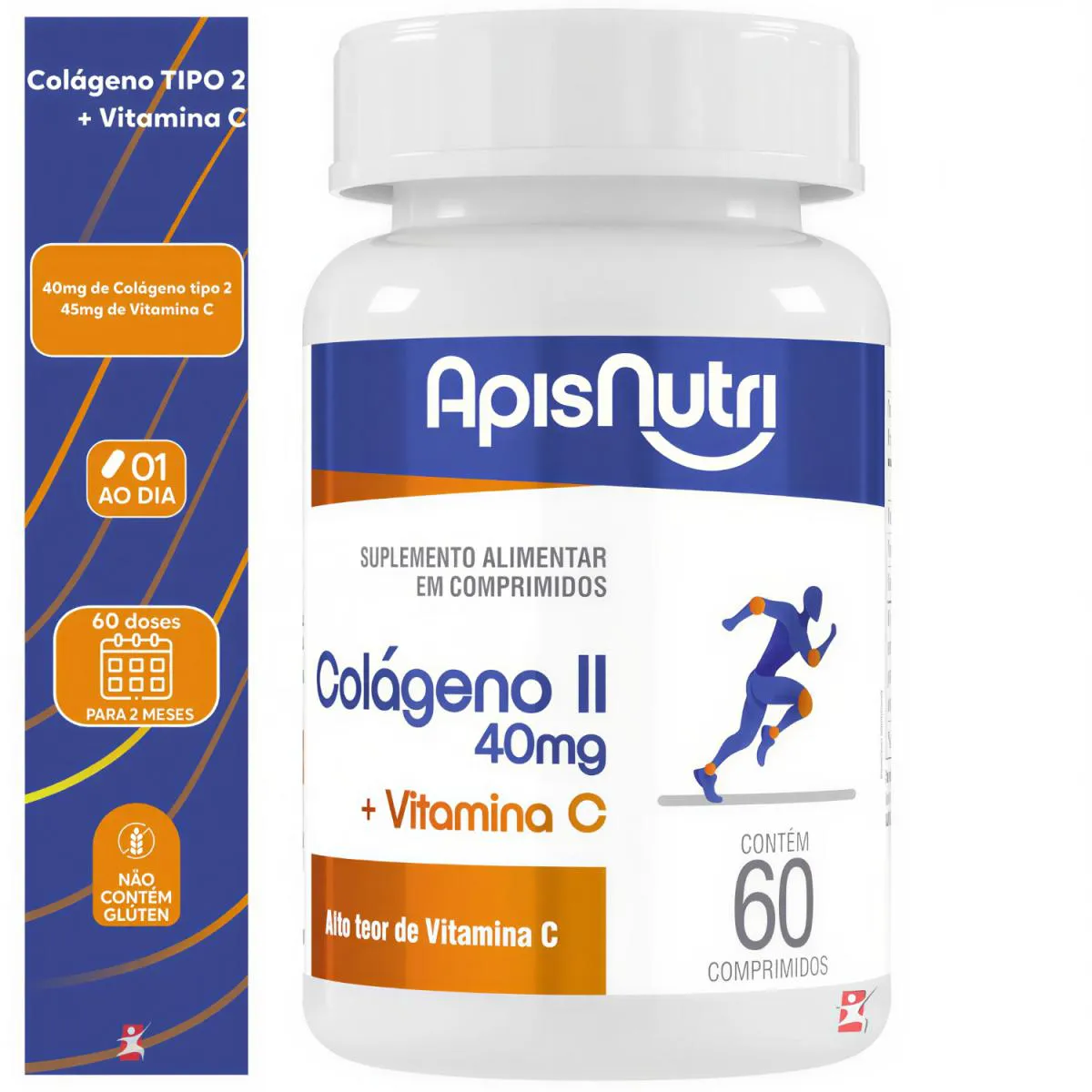 Colageno Tipo 2 + Vitamina C 1 ao Dia 60 Comprimidos Concentrados - Apisnutri