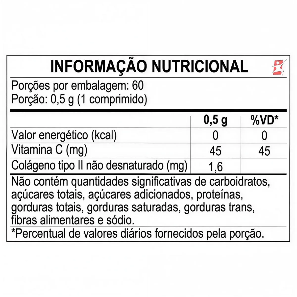 DESCRIÇÃO Formulado com o colágeno Tipo II, também conhecido como o "não hidrolisado ou não desnaturado" é a forma de Colágeno mais recomendada para a reconstrução de tecidos cartilaginosos, pois é o componente maioritário das cartilagens. Fonte de proteínas, o Colágeno auxilia na formação de ossos e músculos, melhora a flexibilidade e a mobilidade, na recuperação de lesões, podendo ajudar no tratamento das dores articulares e doenças degenerativas, como osteoartrite e a artrite reumanoide, nutrindo e recuperando os tecidos articulares cartilaginosos. Já o papel da vitamina C é aumentar a produção, absorção e atividade do colágeno. É essencial na formação das fibras de Colágeno em todos os tecidos do organismo. BENEFÍCIOS Saúde Articular A combinação do Colágeno Tipo II com a vitamina c pode ajudar a reduzir a dor e a inflamação associadas a condições como a osteoartrite. É importante ressaltar que a Vitamina C é essencial para a síntese de Colágeno, promovendo a regeneração da cartilagem e melhorando a Função Articular. Saúde da Pele A Vitamina C é um excelente antioxidante que auxilia na proteção dos danos contra os radicais livres, enquanto o Colágeno melhora a elasticidade e a firmeza da pele. A combinação dos dois pode ajudar a manter a pele hidratada e com aparência mais jovem, reduzindo rugas e linhas finas. TABELA NUTRICIONAL Anexo nas imagens do anúncio. SUGESTÃO DE USO Ingerir 1 (um) comprimido ao dia. Recomendação de uso: 19 (dezenove) anos ou acima. INGREDIENTES Ácido ascórbico, colágeno de frango com colágeno tipo II não desnaturado, lubrificante talco. Antiumectantes: estearato de magnésio e dióxido de sílico. RECOMENDAÇÕES - CUIDADOS - CONSERVAÇÃO - Este produto não é um medicamento. - Não exceder a recomendação diária de consumo indicada na embalagem. - Mantenha fora do alcance de crianças. - Este produto não deve ser consumido por gestantes, lactantes e crianças. - Manter a embalagem bem fechada e em local seco e fresco. Não expor à luz solar. Consumir em até 60 dias após aberto. REGISTRO ANVISA Isento de registro no M.S conforme RDC 240/2018.