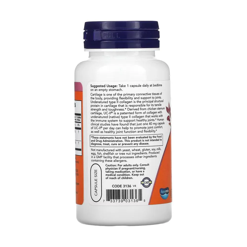 Colágeno Uc-Ii 40Mg Now Foods 120 Capsulas Vegetarianas