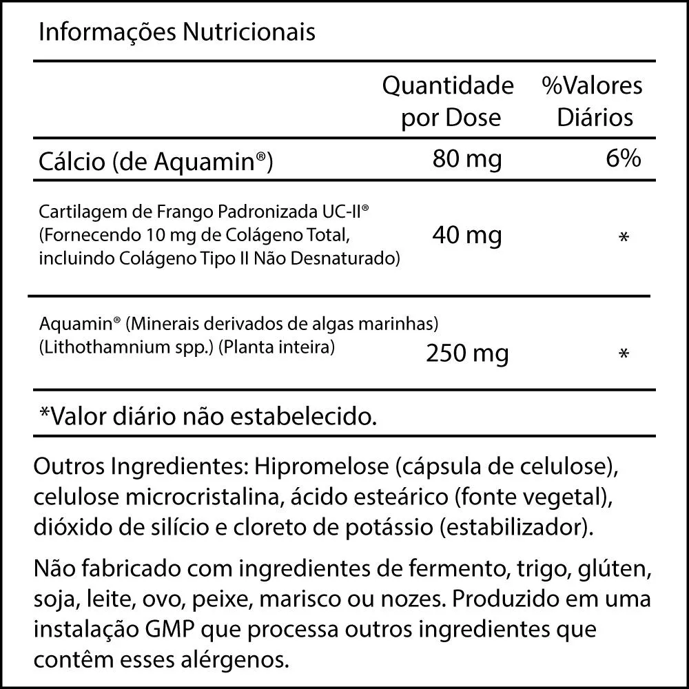 colágeno UC-II Tipo 2 40mg Now Foods 120 Cápsulas Vegetarianas / No Brasil A cartilagem é um dos principais tecidos conjuntivos do corpo, responsável por proporcionar flexibilidade e dar suporte a nossa locomoção, sendo o colágeno tipo II sua principal proteína estrutural, bem como o responsável por sua resistência e resistência à tração. Esta fórmula de 120 cápsulas desenvolvida pela Now Foods corresponde a uma forma única de colágeno UC-II com colágeno tipo II que pode ser facilmente absorvida pelo organismo e fornecer as quantidades necessárias desta substância importante a sua dieta alimentar. Outros Ingredientes: Hipromelose (cápsula de celulose), Celulose Microcristalina, Ácido Esteárico (fonte vegetal) e Dióxido de Silício. Fabricado sem fermento, trigo, glúten, soja, leite, ovo, peixe, marisco, nozes ou gergelim. Recomendação de uso. Tome 1 cápsula por dia ao deitar com o estômago vazio. Cuidados: Apenas para adultos. Busque orientação se estiver grávida ou amamentando. Mantenha fora do alcance de crianças. Pode ocorrer variação de cor natural neste produto. Dimensões: 5,5 x 5,5 x 10,5 cm Peso: 0,082 Itens inclusos: 1x Frasco com 120 Cápsula Vide Validade