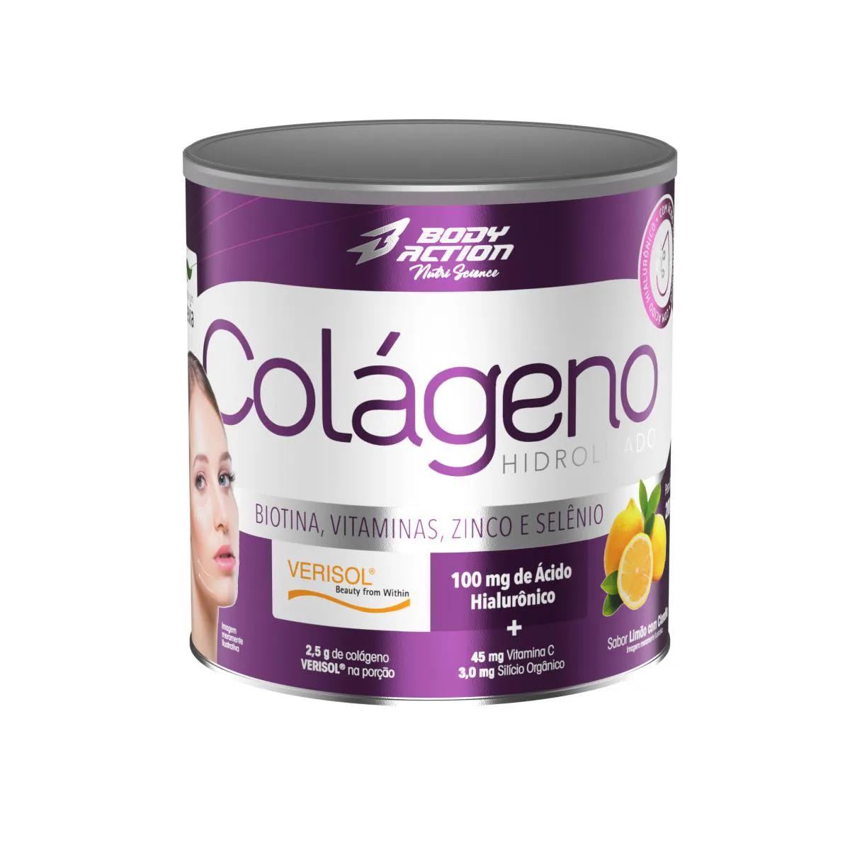 Colágeno Verisol C/ Ácido Hialurônico 200gr Bodyaction Limão