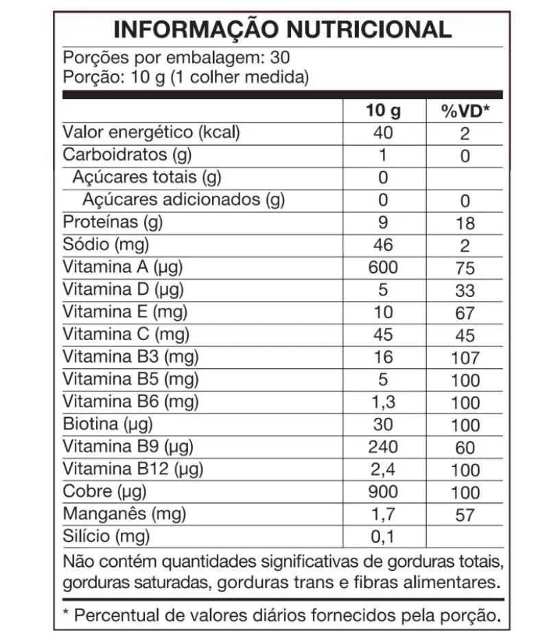 - 9 g de peptídeos de colágeno por porção;