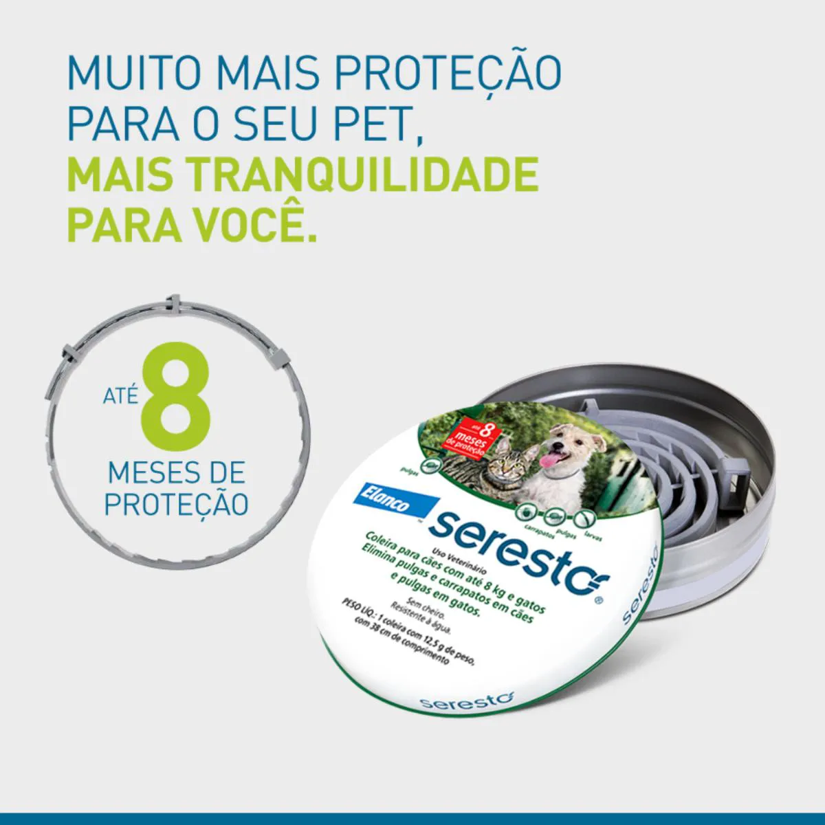 Coleira Antipulgas E Carrapatos Seresto 12,5gr Para Cachorros E Gatos Com Menos De 8kg Com 38cm