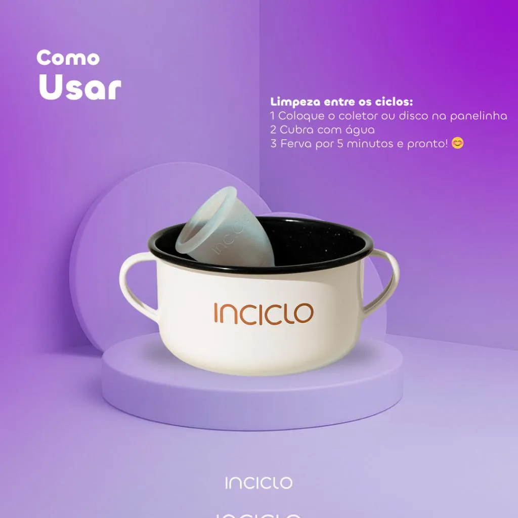O silicone hipoalergênico é um material de fácil higienização. Lave o seu coletor ou disco menstrual com água e o Sabonete Líquido Inciclo e enxague-o bem a cada troca. Ao final de cada ciclo, você deve colocar o coletor na Cápsula ou a Panelinha de Ágata Inciclo e seguir o passo a passo que consta na embalagem.