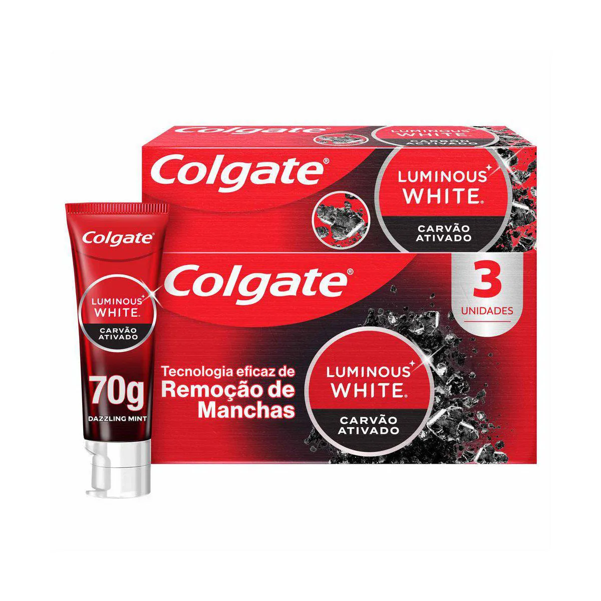Creme Dental Colgate Luminous White Carvão Ativado 70g 3 unidades