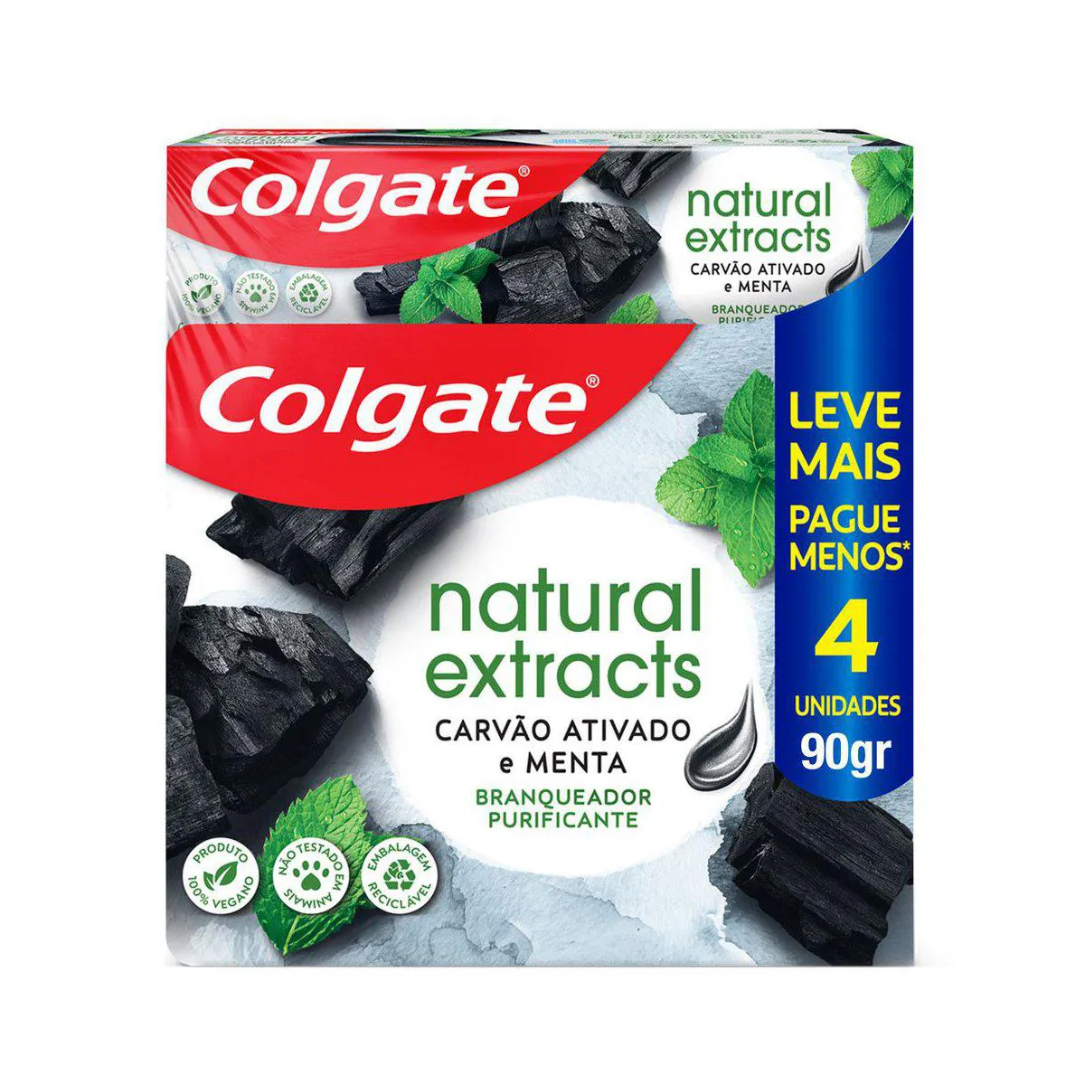 Kit Pasta de Dente Colgate Naturals Extracts Carvão Ativado Branqueador Purificante 4 unidades de 90g cada