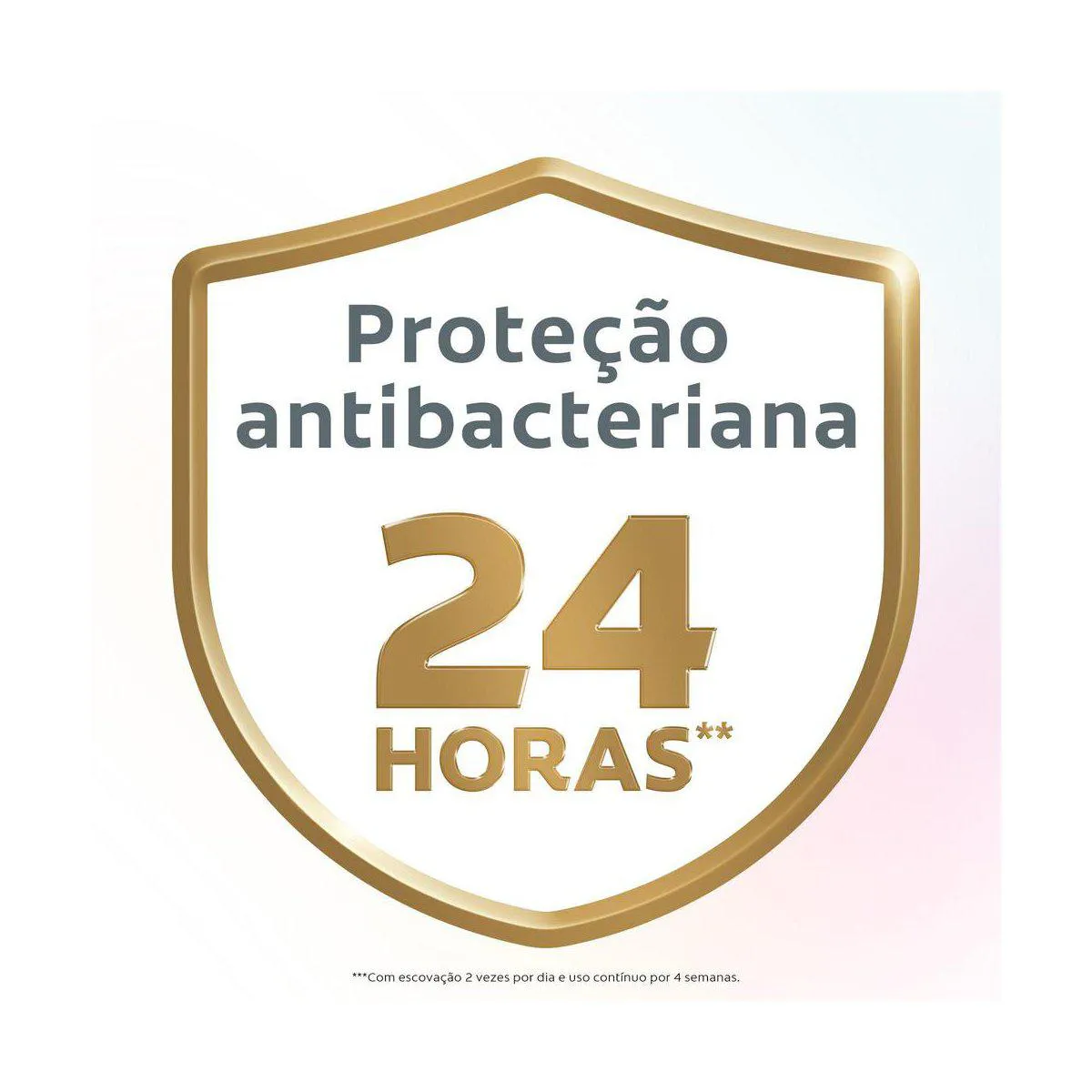 - Proporciona 24 horas de proteção antibacteriana com escovação duas vezes ao dia.