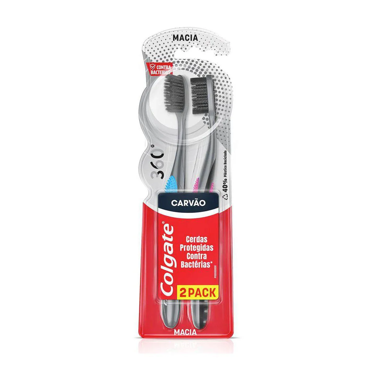 A Colgate 360º Black Carvão é uma escova de dentes com cerdas infundidas em carvão, que promovem uma limpeza superior, duas vezes mais profunda, quando comparada com as escovas comuns.