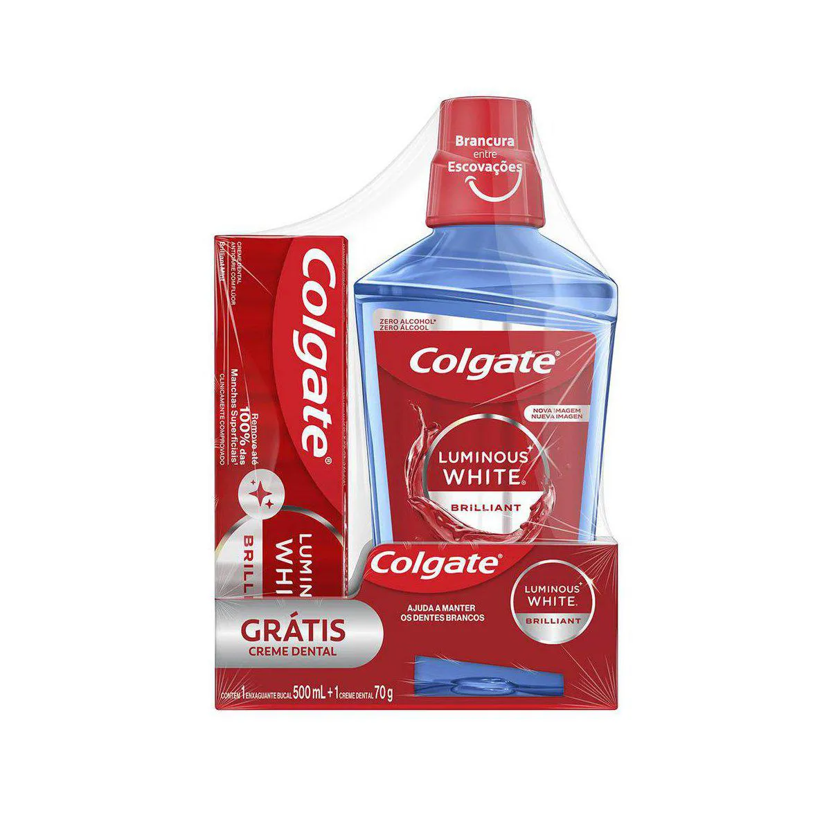 Kit Colgate Luminous White Enxaguante Bucal 500ml + Pasta de Dente 70g