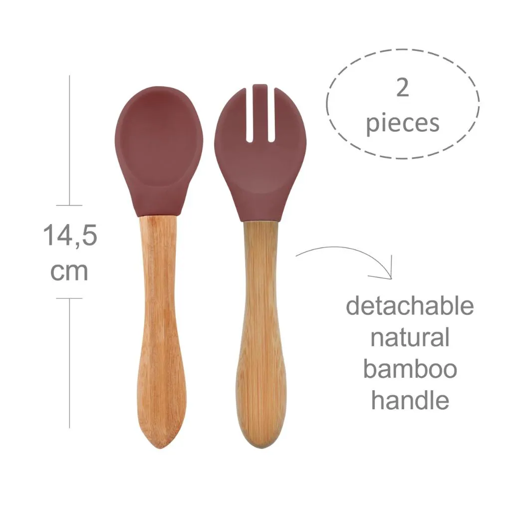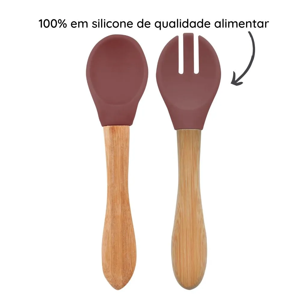 Colher e Garfo de Silicone e Bambu Dig In - Minikoioi