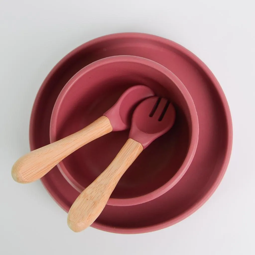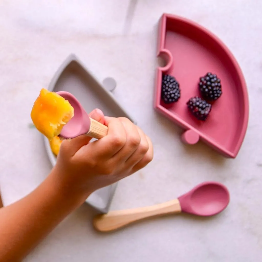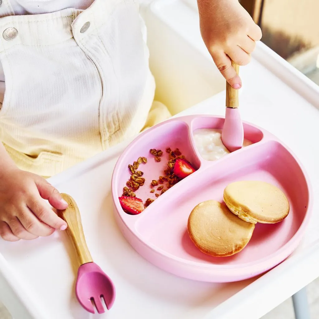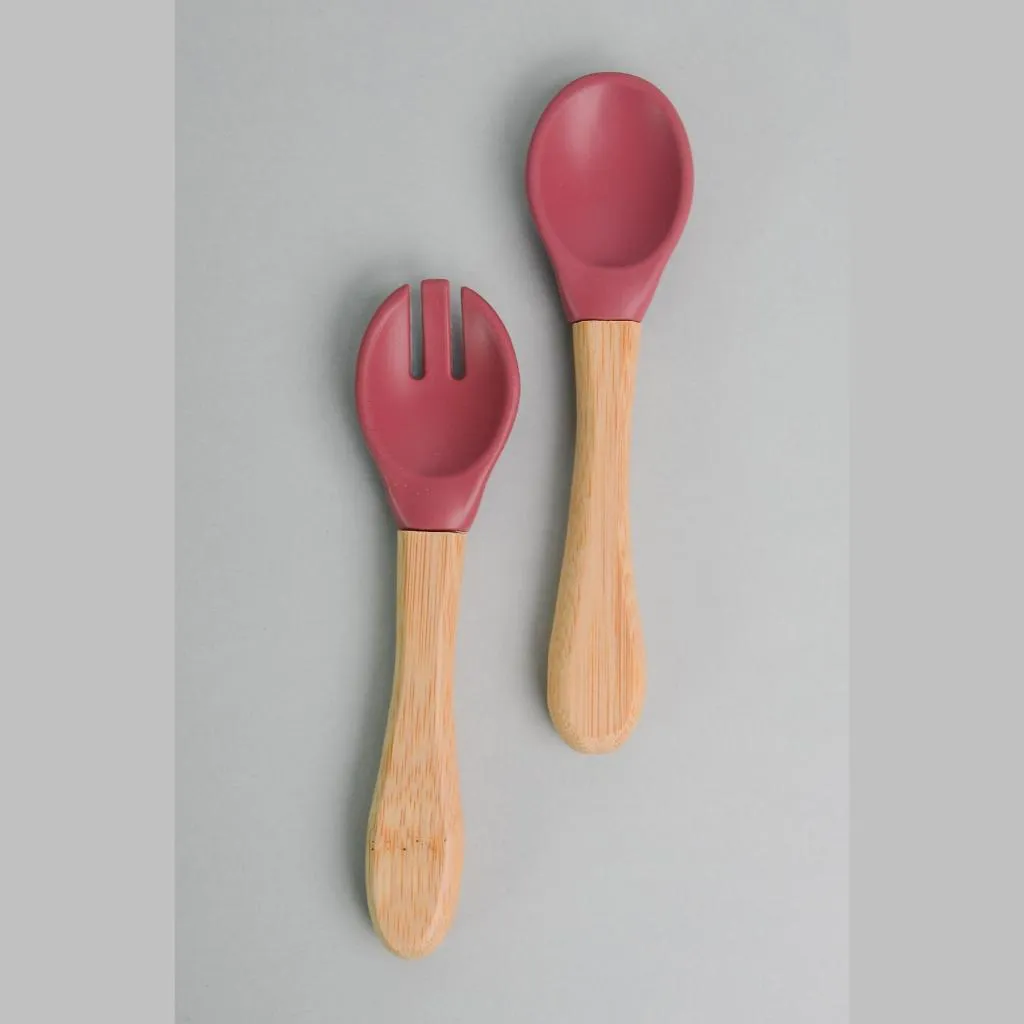 Colher e Garfo Silicone e Bambu Dig In Velvet Rose - Minikoioi
