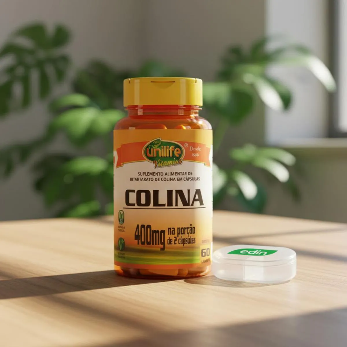 COLINA (vitamina B8) UNILIFE 400MG 60 CÁPSULAS + PORTA CÁPSULAS