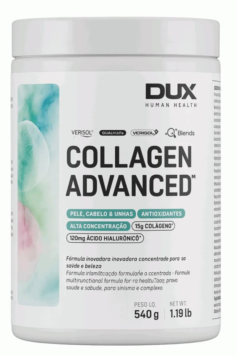 Collagen Advanced é uma fórmula inovadora e multifuncional, formulada com peptídeos bioativos de colágeno, colágeno hidrolisado e ácido hialurônico em alta concentração. Esta combinação é enriquecida com 7 nutrientes cofatores essenciais para a formação de colágeno, além de promover a saúde do cabelo, da pele e das unhas. Criada para otimizar a reposição dessa proteína fundamental, os peptídeos bioativos de colágeno Verisol®, com comprovação científica, auxiliam na manutenção da saúde da pele, reduzindo rugas e aumentando a elasticidade. O colágeno hidrolisado, de fácil absorção, repõe o colágeno perdido ao longo do tempo, beneficiando não apenas a pele, mas também os ossos e articulações.Ideal ParaO Collagen Advanced DUX® é perfeito para quem procura um suplemento de alta qualidade que contribua para a firmeza, estrutura, hidratação, fotoproteção e renovação celular da pele. Com uma fórmula limpa e rica em nutrientes funcionais, ele é essencial no combate aos radicais livres, ajudando a manter a pele jovem e saudável.Por Trás do RótuloCom o passar dos anos, a produção natural de colágeno pelo nosso corpo diminui, e a pele, sendo o maior órgão, começa a mostrar os efeitos desse declínio. Entre os sinais estão as rugas, manchas e a perda de elasticidade e firmeza. O envelhecimento é influenciado por diversos fatores, como a idade, a exposição à radiação UV, o tabagismo, a poluição do ar e uma nutrição inadequada. A suplementação com colágeno auxilia na estimulação da produção de novas fibras, que se conectam às fibras existentes, contribuindo para a recuperação da estrutura da pele.