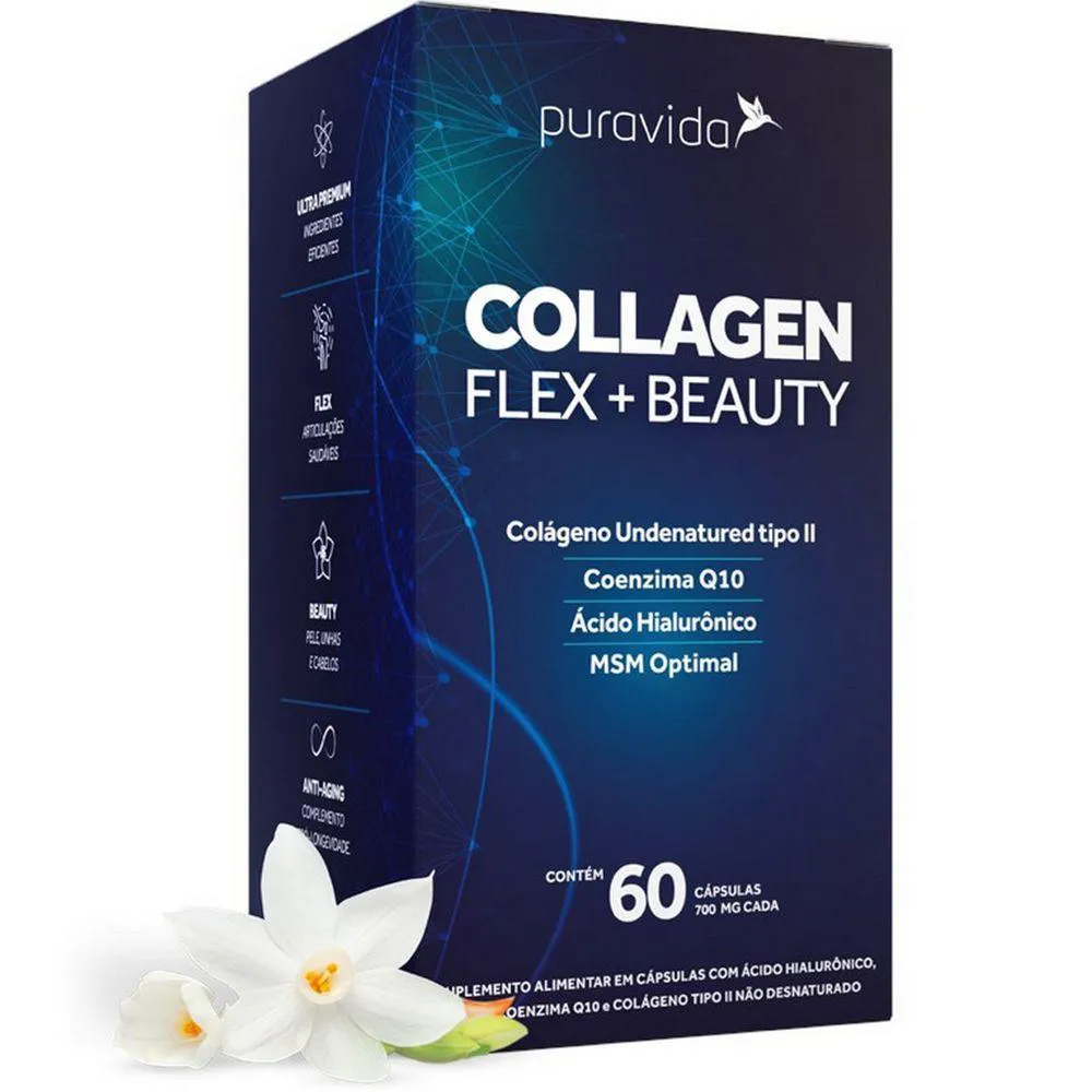 O Collagen Flex Beauty da Puravida é um suplemento alimentar de colágeno tipo 2 com ácido hialurônico + MSM e Coenzima Q10 , diferente de tudo que você já experimentou.