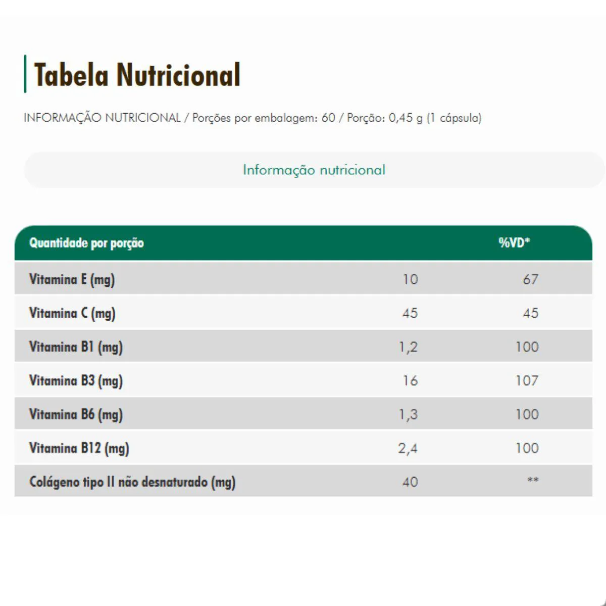 A formulação utiliza colágeno tipo II em sua forma concentrada, naturalmente rica em peptídeos estruturais. O padrão clean label exclui corantes artificiais e ingredientes supérfluos, reforçando o compromisso da marca com naturalidade e responsabilidade. A rastreabilidade da matéria-prima e o rigor no processo de fabricação asseguram um produto confiável e alinhado ao propósito de nutrição consciente.