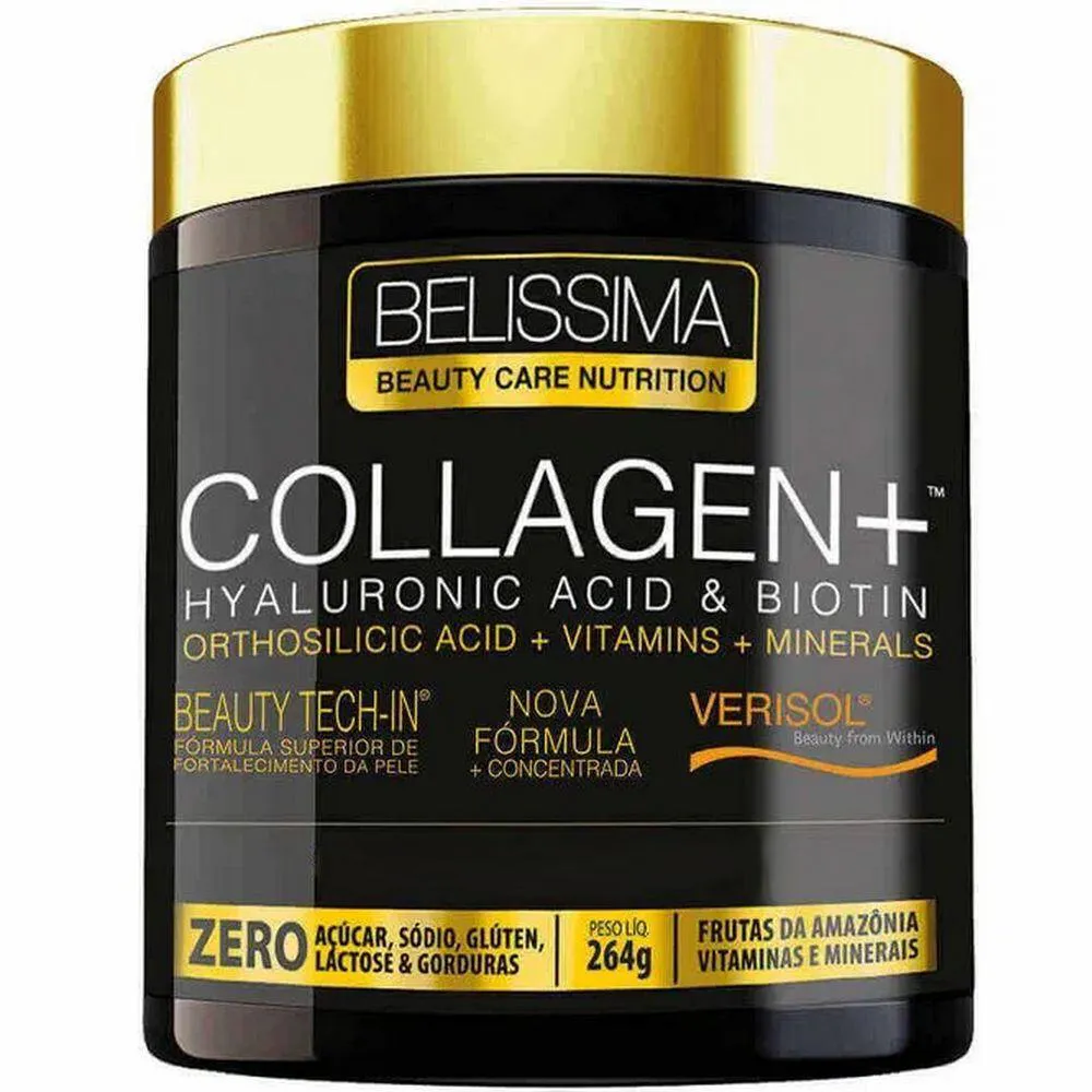 O colágeno VERISOL, presente na formulação do COLLAGEN+ BELÍSSIMA é o peptídeo de colágeno mais estudado pela ciência em relação aos seus efeitos positivos na saúde da pele, unhas e cabelo. Sua suplementação de forma regular e adequada é capaz de reduzir as rugas da pele e aumentar a síntese da matriz dérmica. Para garantir a eficácia da sua suplementação, nosso time de cientistas desenvolveu uma formulação com ativos que se completam e potencializam quando consumidos juntos. Fórmula completa que fornece tudo que o organismo precisa para manter a pele, cabelos e unhas saudáveis de dentro para fora.