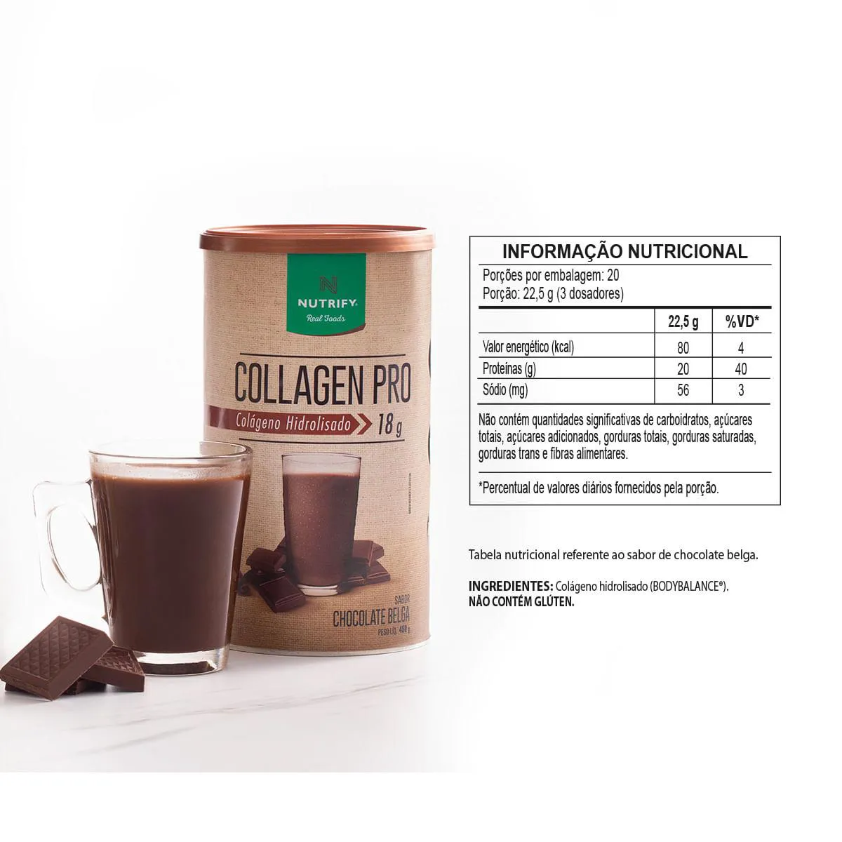 A produção de colágeno pelo organismo diminui progressivamente ao longo dos anos, ocasionando flacidez e outros sinais de envelhecimento. De fácil digestibilidade e ótima absorção, COLLAGEN PRO NUTRIFY é formulado com os peptídeos bioativos de colágeno BODY BALANCE®, matéria-prima de alta pureza e tecnologia. Uma excelente forma de aumentar a ingestão de proteína.