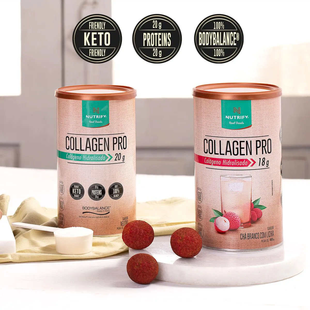A produção de colágeno pelo organismo diminui progressivamente ao longo dos anos, ocasionando flacidez e outros sinais de envelhecimento. De fácil digestibilidade e ótima absorção, COLLAGEN PRO NUTRIFY é formulado com os peptídeos bioativos de colágeno BODY BALANCE®, matéria-prima de alta pureza e tecnologia. Uma excelente forma de aumentar a ingestão de proteína.