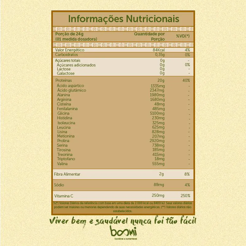 - Fornece proteína de colágeno em apresentação neutra, facilitando o consumo.