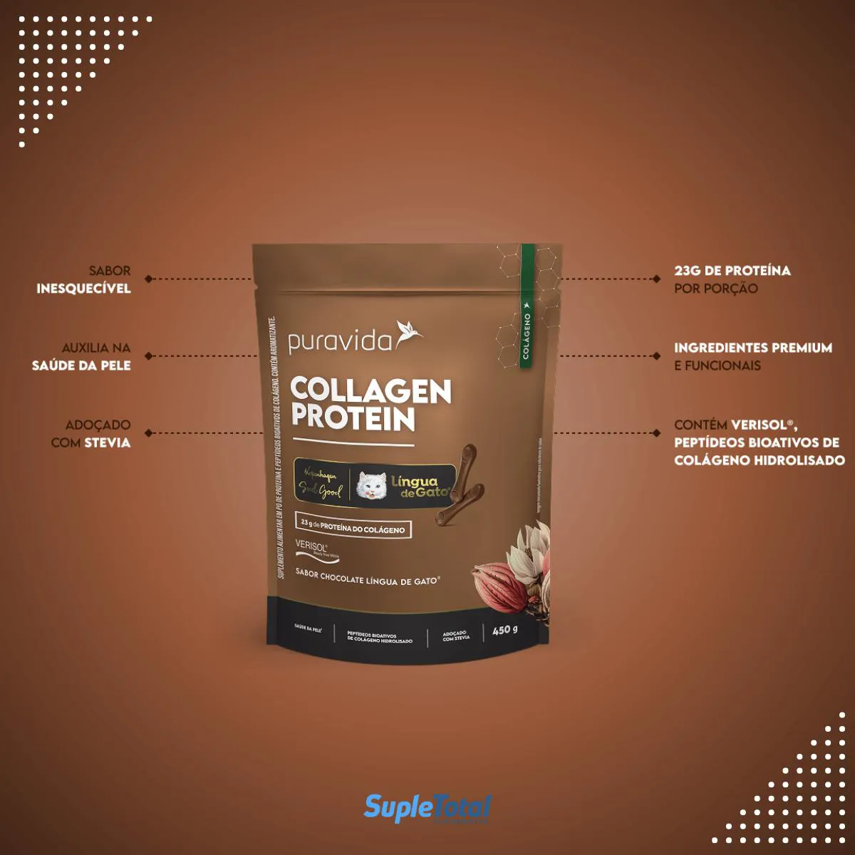 Collagen Protein Língua de Gato Verisol 450G Puravida