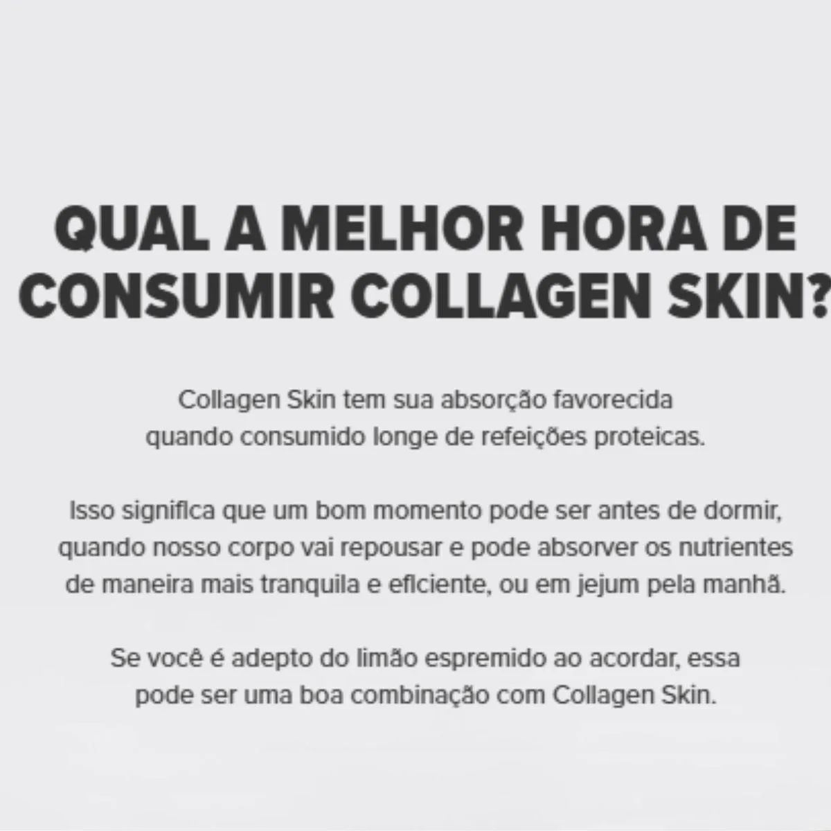 Palavras-chave como colágeno, pele, cabelo, unhas, ácido hialurônico e bem-estar reforçam a proposta de suplementar a alimentação com ingredientes de qualidade.