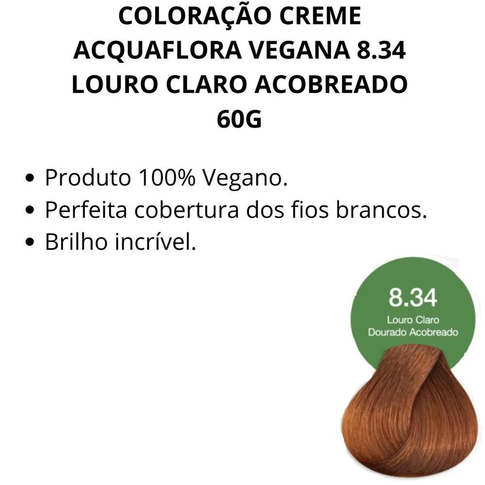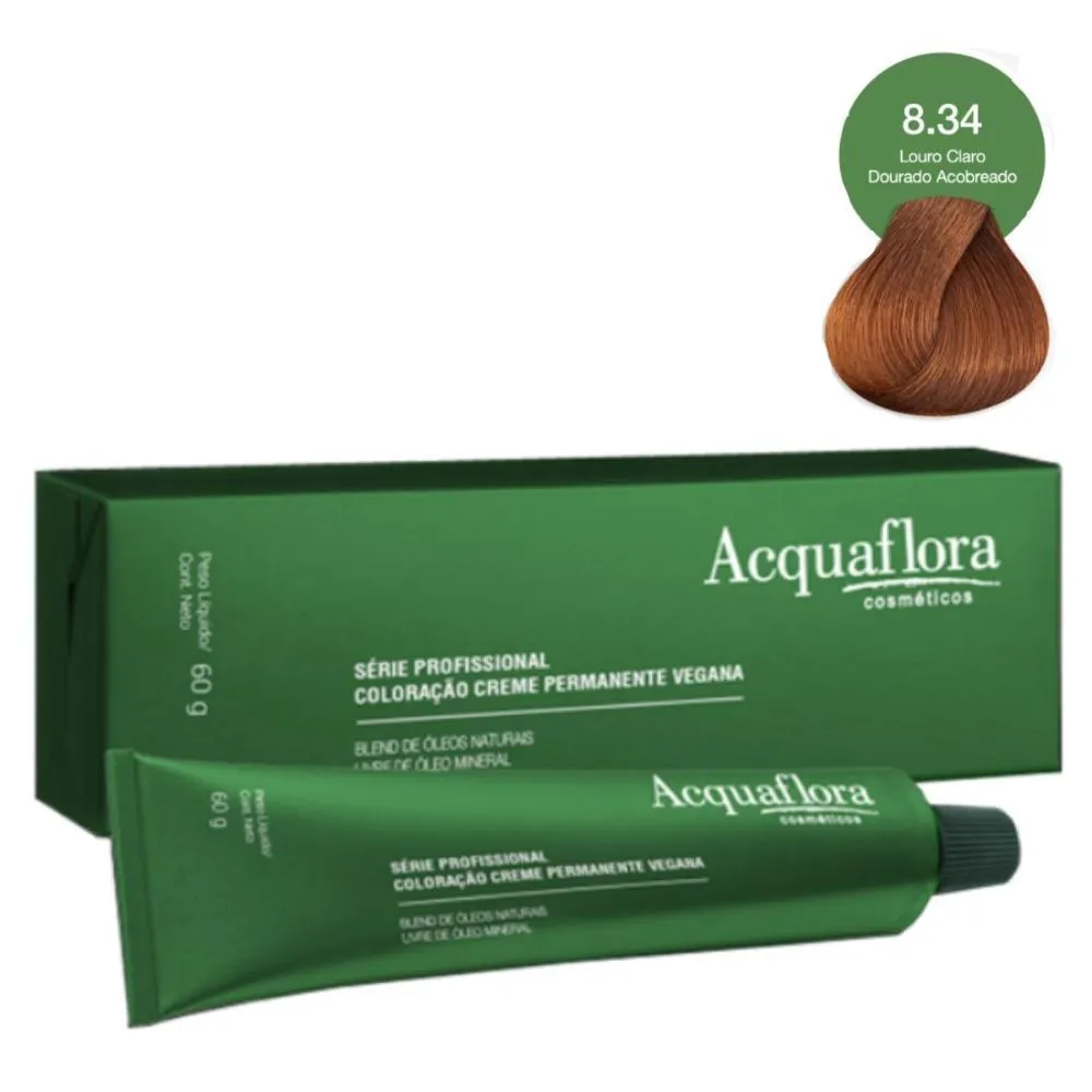 COLORAçãO CREME ACQUAFLORA VEGANA 8.34 LOURO CLARO ACOBREADO 60G