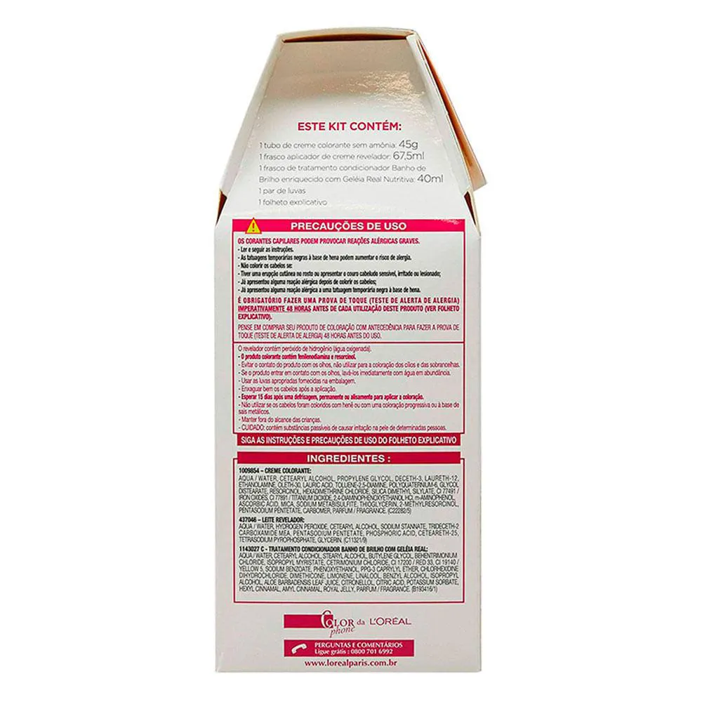 Ativos:Enriquecido com Geleia Real, o tratamento condicionador Nutri-Brilho nutre profundamente cada fio após a aplicação da coloração. Isso garante maciez incomparável e um toque sedoso aos seus cabelos.
