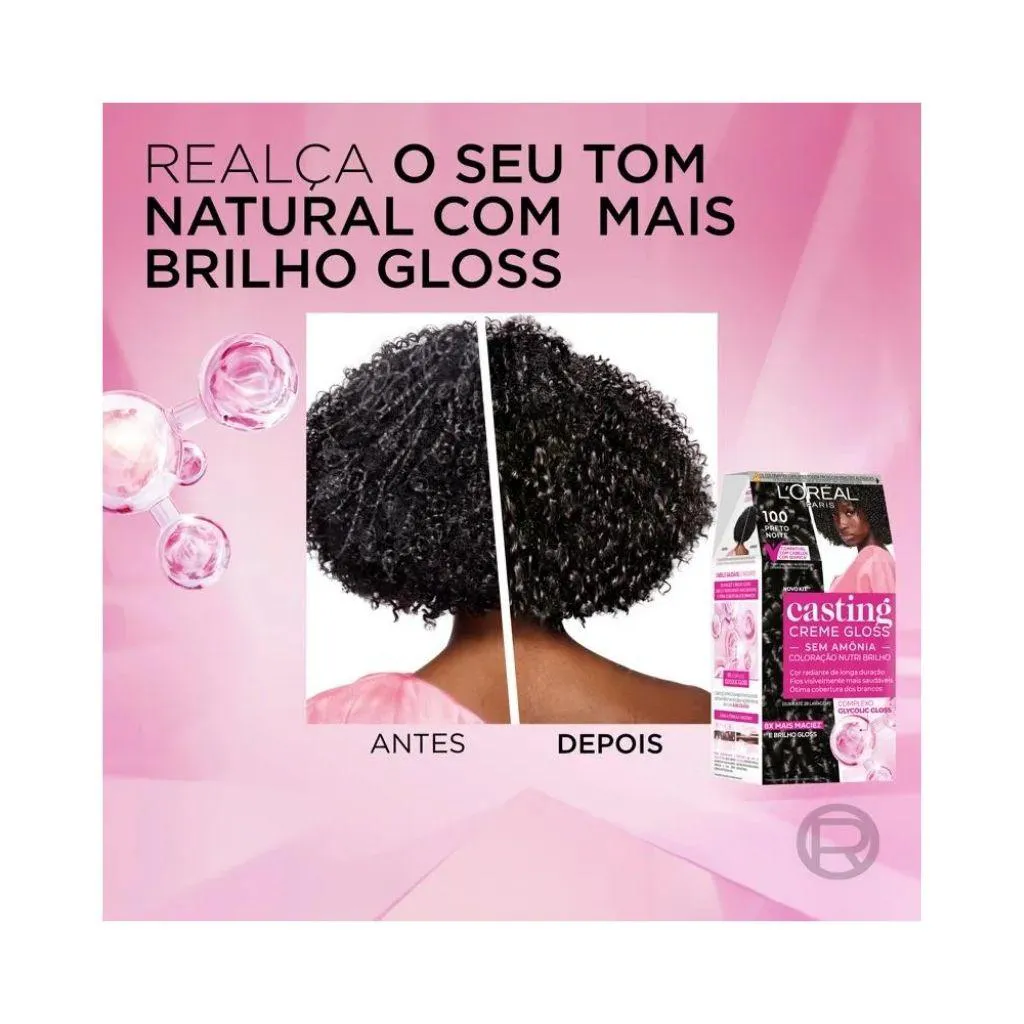 COLORAÇÃO CASTING GLOSS 100 PRETO NOITE - KIT COM 2 UNIDADES Descrição Casting Creme Gloss é a coloração sem amônia desenvolvida pelos laboratórios de L’Oréal Paris, marca de cosméticos líder mundial que permite que o melhor da beleza esteja disponível e acessível a todos. Oferece aos cabelos uma cor tom sobre tom e garante 4X mais brilho para os fios, com resultado incrível que dura até 28 lavagens.