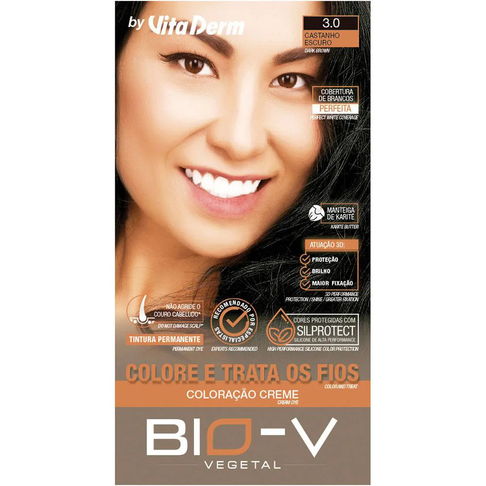 Coloração Creme Bio-V Vita Derm 3.0 Castanho Escuro 60G