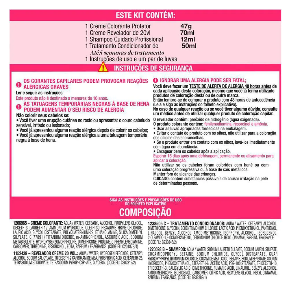 - Para cabelo curto, utilizar 1 caixinha; para cabelo longo, utilizar 2 caixinhas.