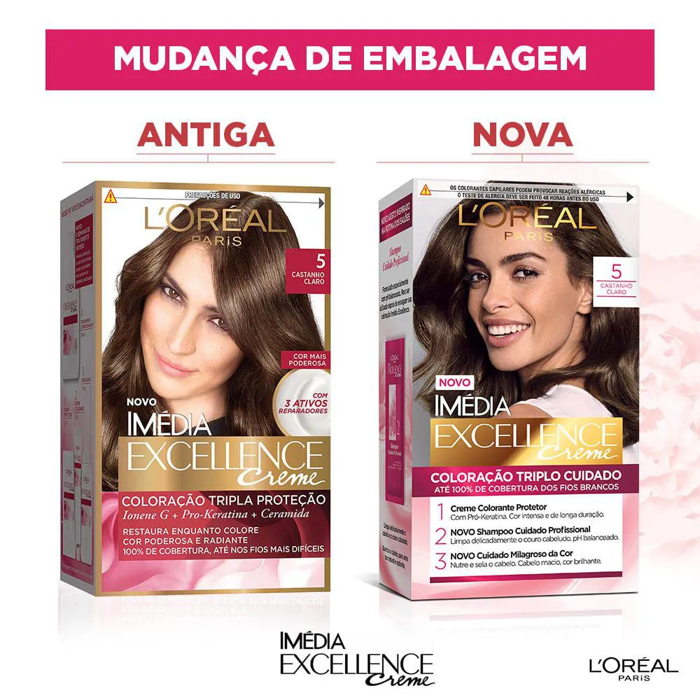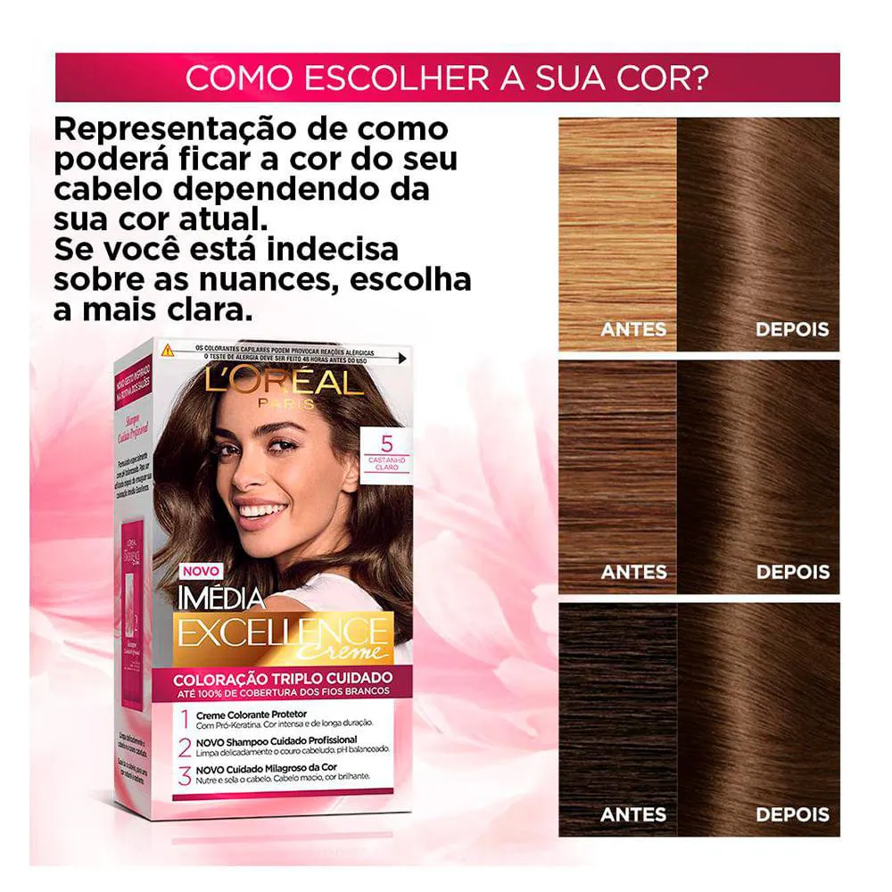 Imédia Excellence é a coloração permanente de L'Oréal Paris que com a sua tripla proteção, restaura enquanto colore a fibra capilar. Coloração com triplo cuidado e 100% de cobertura dos brancos.