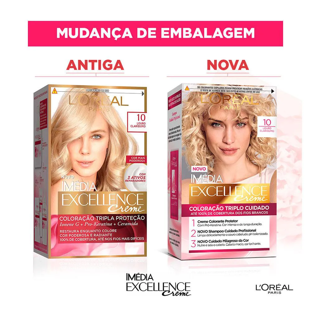 Imédia Excellence restaura enquanto colore pois é enriquecida com ativos conhecidos por seu poder reparados. Com Ionene G, Pro-Keratina e Ceramida restaura, fortalece e protege seu cabelo para melhor receber a cor. Um cuidado mais poderoso, cor mais poderosa.