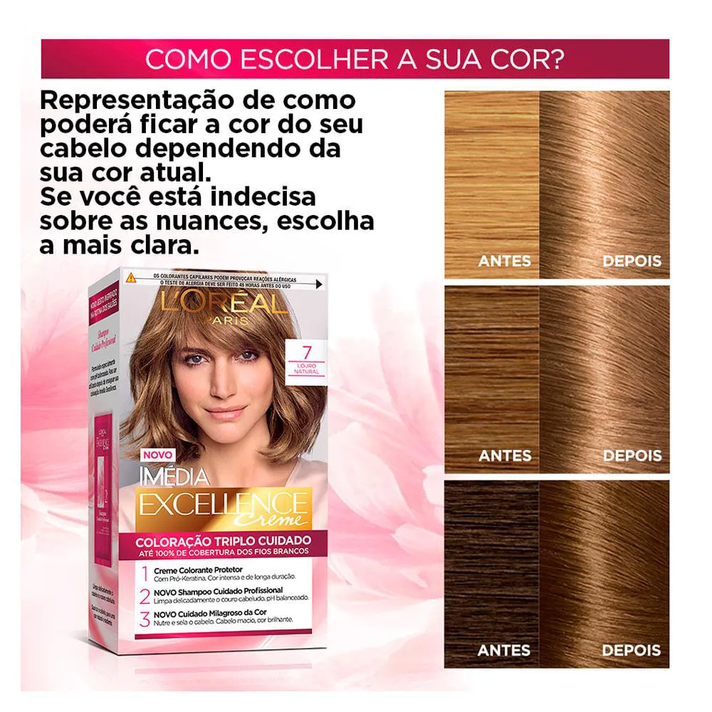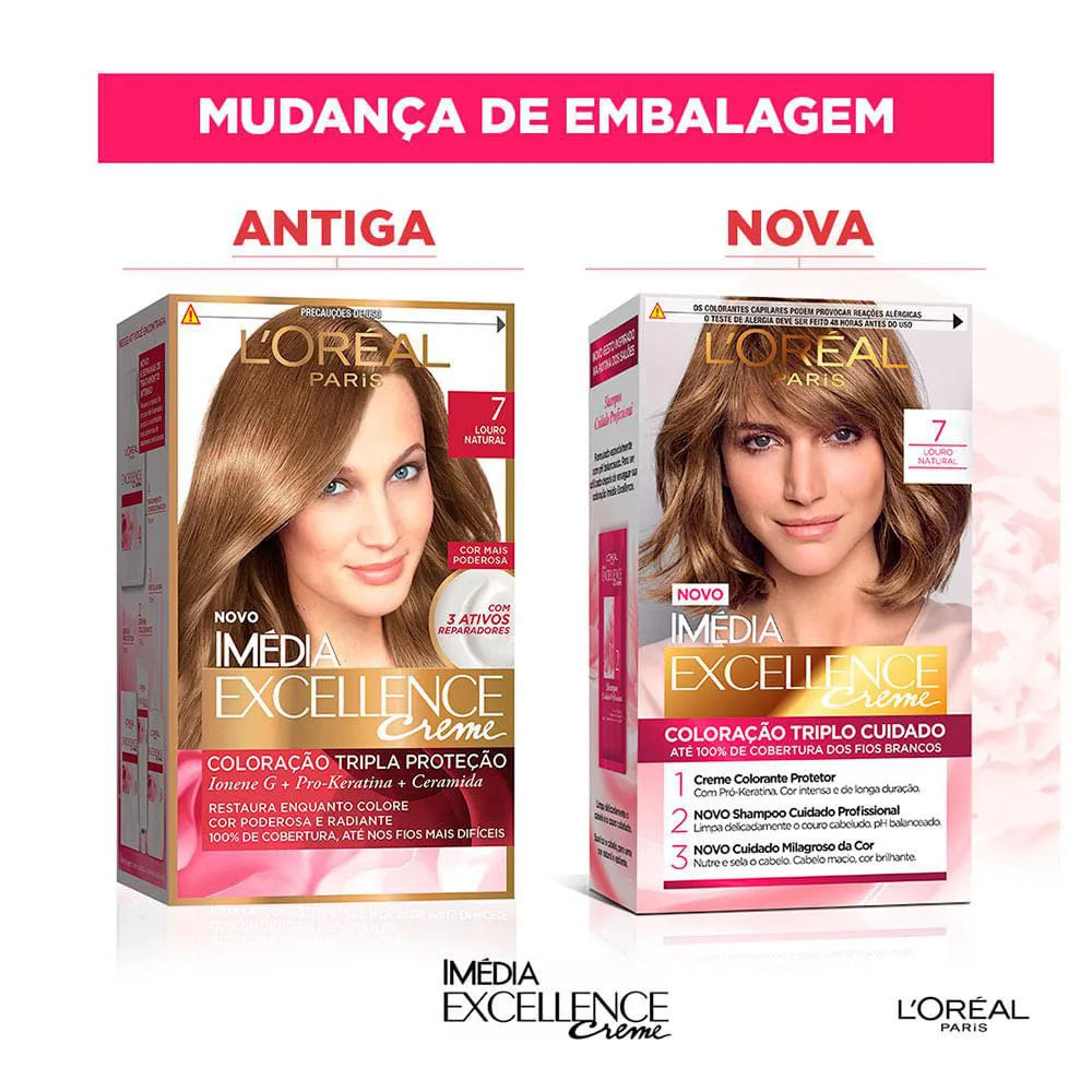 Imédia Excellence é a coloração permanente de L'Oréal Paris que com a sua tripla proteção, restaura enquanto colore a fibra capilar. Coloração com triplo cuidado e 100% de cobertura dos brancos.